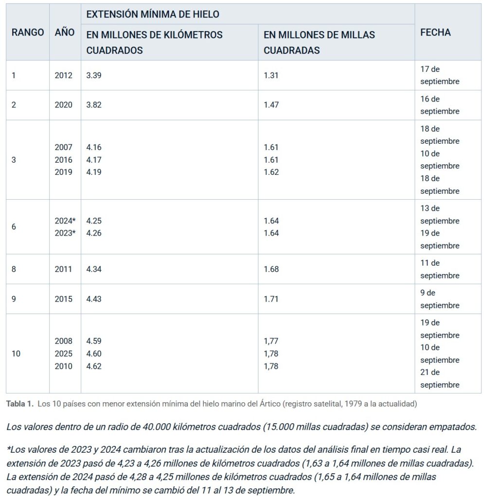 Otro aspecto clave: este mínimo se produjo cuatro días antes del rango mediano histórico (que va del 11 al 19 de septiembre), lo que sugiere una temporada de fusión un tanto adelantada.