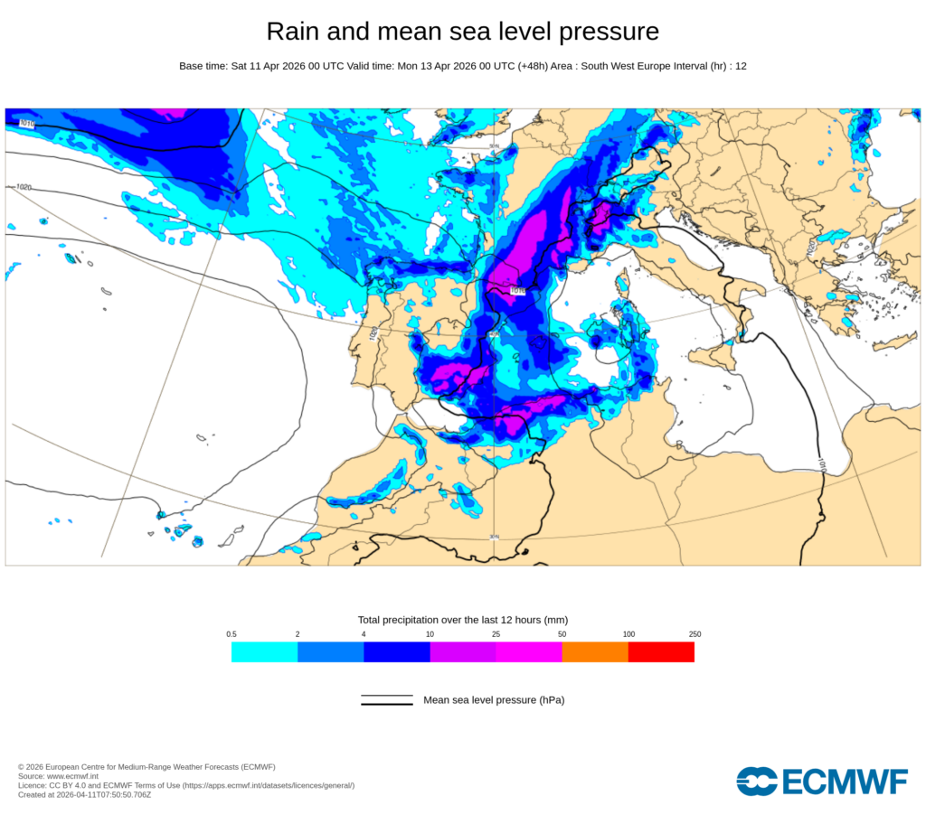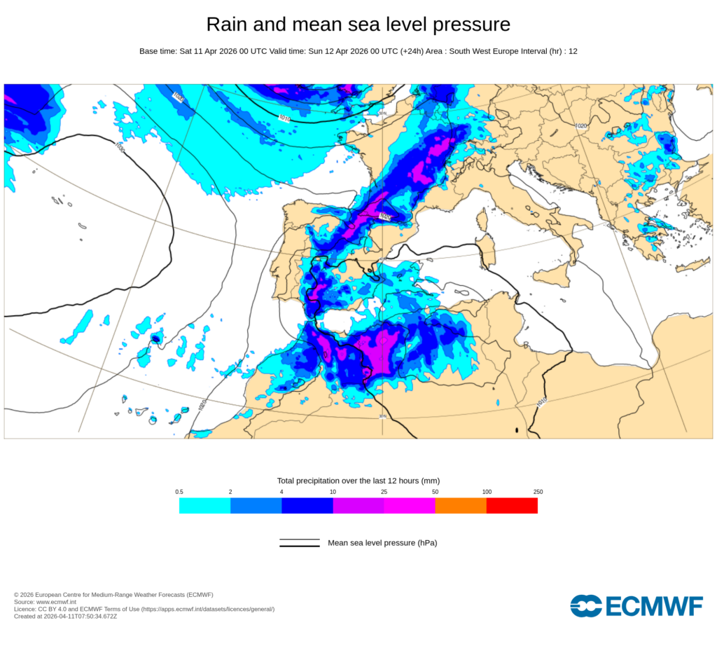 Durante la primavera es habitual que la atmósfera nos traiga retrocesos al tiempo invernal o casi invernal, y esta situación se trata de un buen ejemplo pues, podríamos tener nevadas por encima de unos 800-1000 m desde el sábado por la tarde en la cordillera Cantábrica e Ibérica Norte, que se extenderán durante el domingo a puntos del este de Castilla y León, sistema Central oriental, Ibérica Sur y Pirineos, sin descartar que los chubascos den lugar localmente a descensos de cota adicionales.