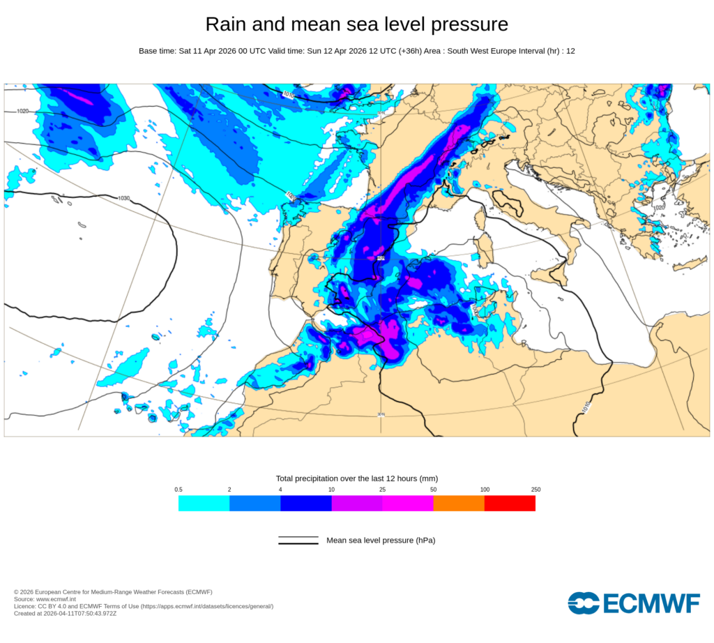 Por el contrario, es probable que los chubascos y tormentas sean fuertes, localmente con granizo, en regiones de Andalucía y entorno del Sistema Central, sin descartar Extremadura.