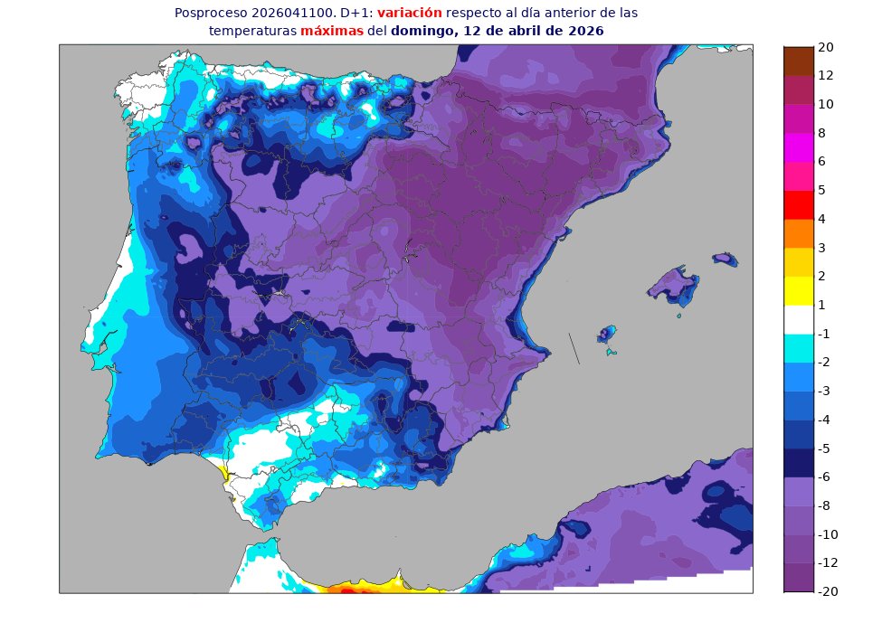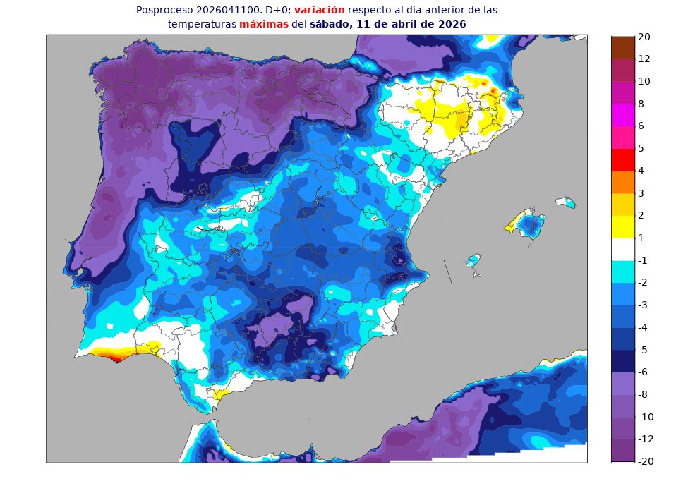 También para las máximas la bajada será notable en Baleares y amplias zonas del centro y mitad este peninsular, incluso extraordinaria en el cuadrante nordeste.