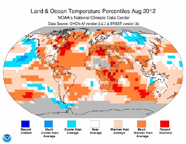 Informe climático de la Tierra. Agosto 2012: 330º mes consecutivo más cálido que el promedio