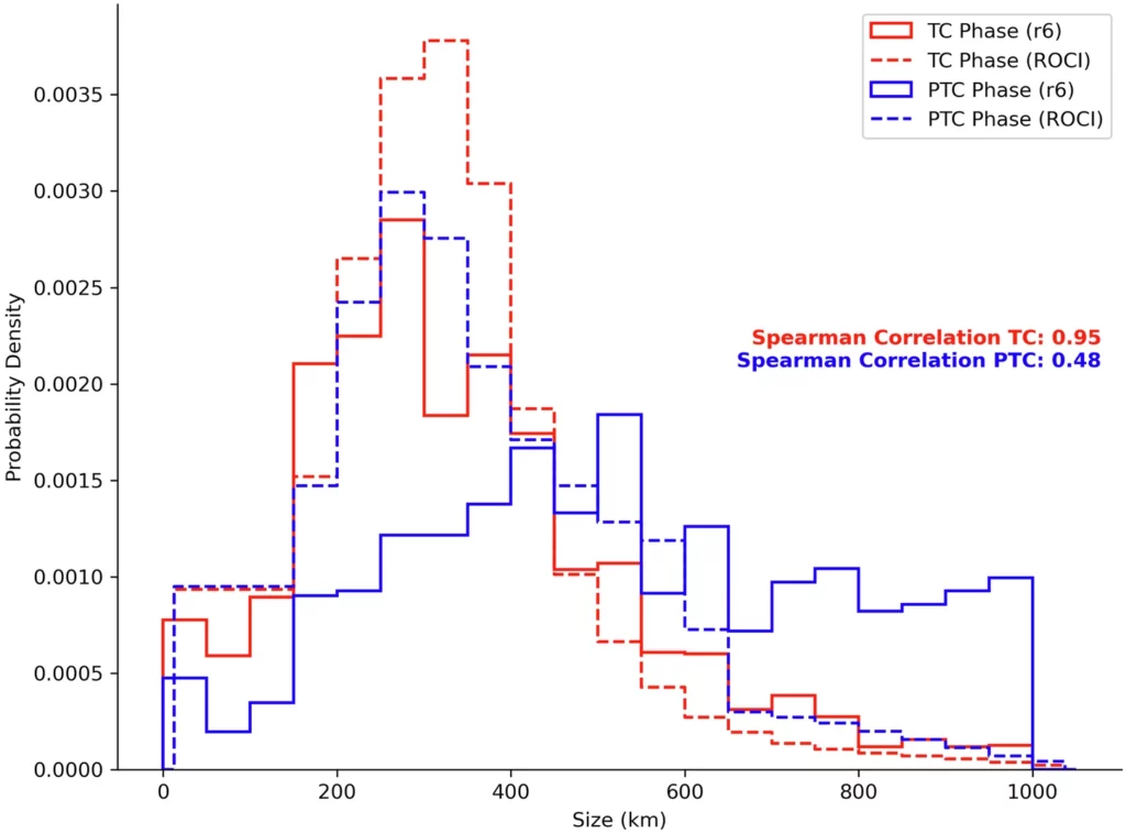 Cambios en el tamaño y desplazamiento de los ciclones