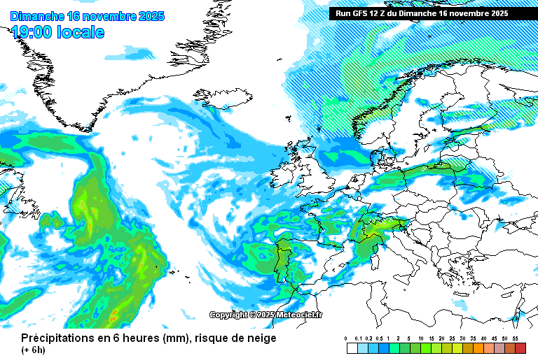 Se prevén precipitaciones en la mitad sur de la vertiente atlántica y Alborán, pudiendo darse aisladamente en la vertiente atlántica norte, archipiélago y sureste peninsular, y siendo más abundantes y con tormentas ocasionales en el suroeste, con probabilidad de ser localmente fuertes y persistentes en el entorno del Estrecho.