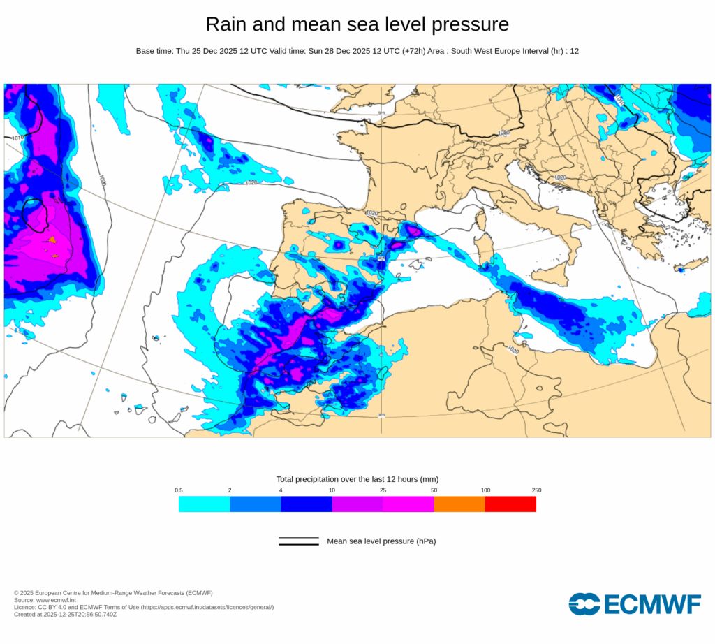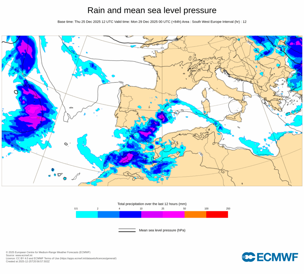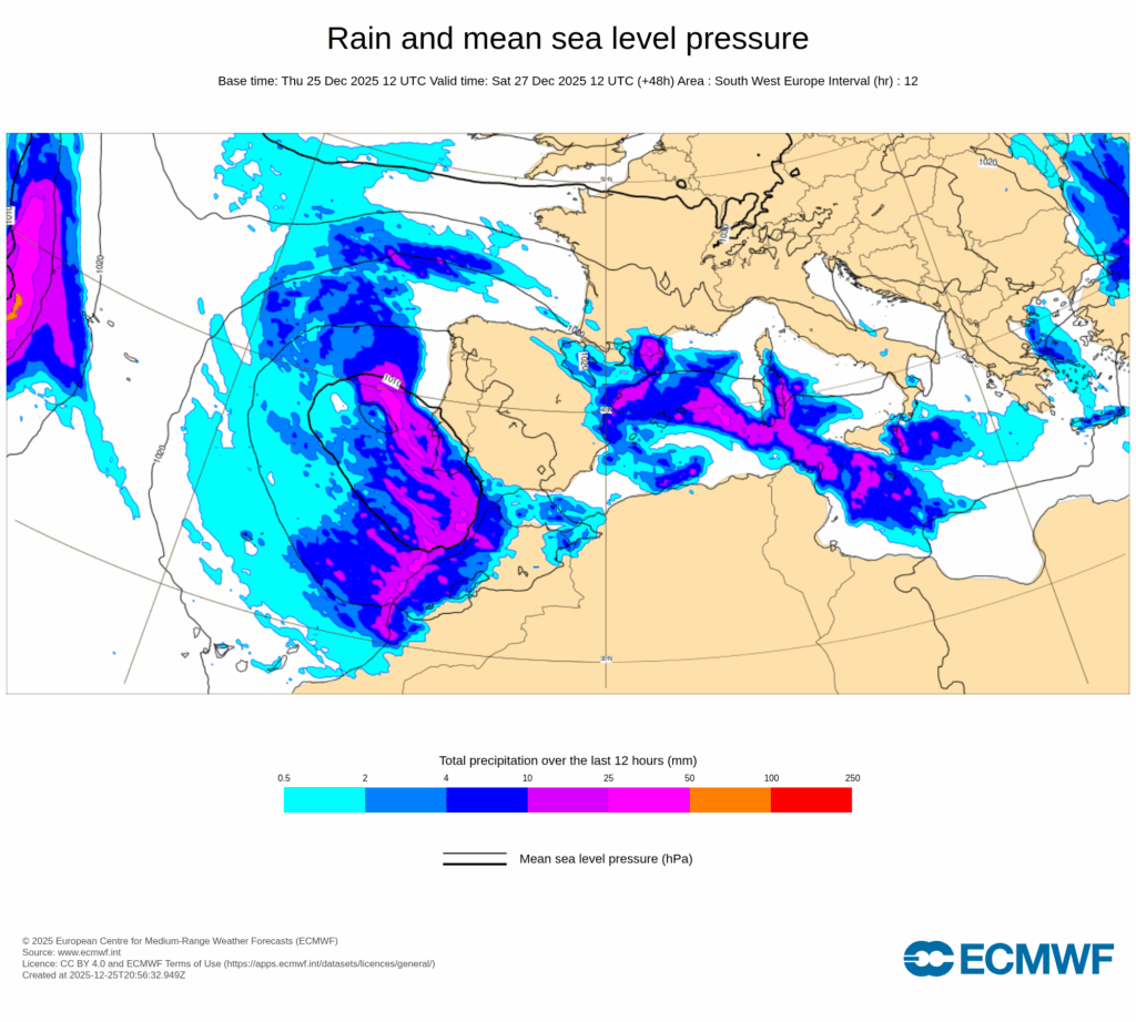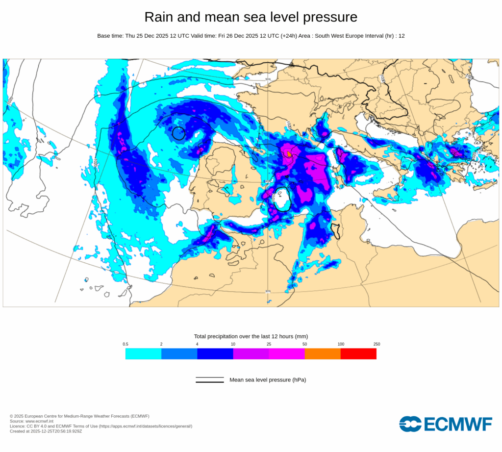 El viernes día 26 de diciembre será una jornada marcada por la inestabilidad en buena parte de la Península y Baleares, con cielos nubosos o cubiertos en las islas, cuadrante nordeste peninsular y al principio en Galicia, y cielos poco nubosos o con intervalos en el resto, si bien al principio con abundante nubosidad baja en la mitad sur de la Península.