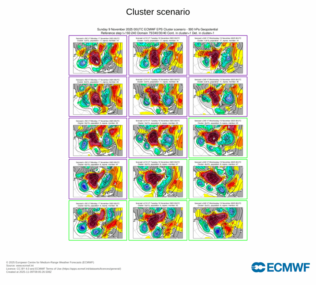 La formación de un anticiclón entre Groenlandia e Islandia, la presencia de otro centro de altas presiones en Rusia más la progresiva retirada de las altas presiones del mediterráneo occidental, debe facilitar el progreso de una potente borrasca que ya hay formada en el Atlántico, no muy lejos del noroeste peninsular.