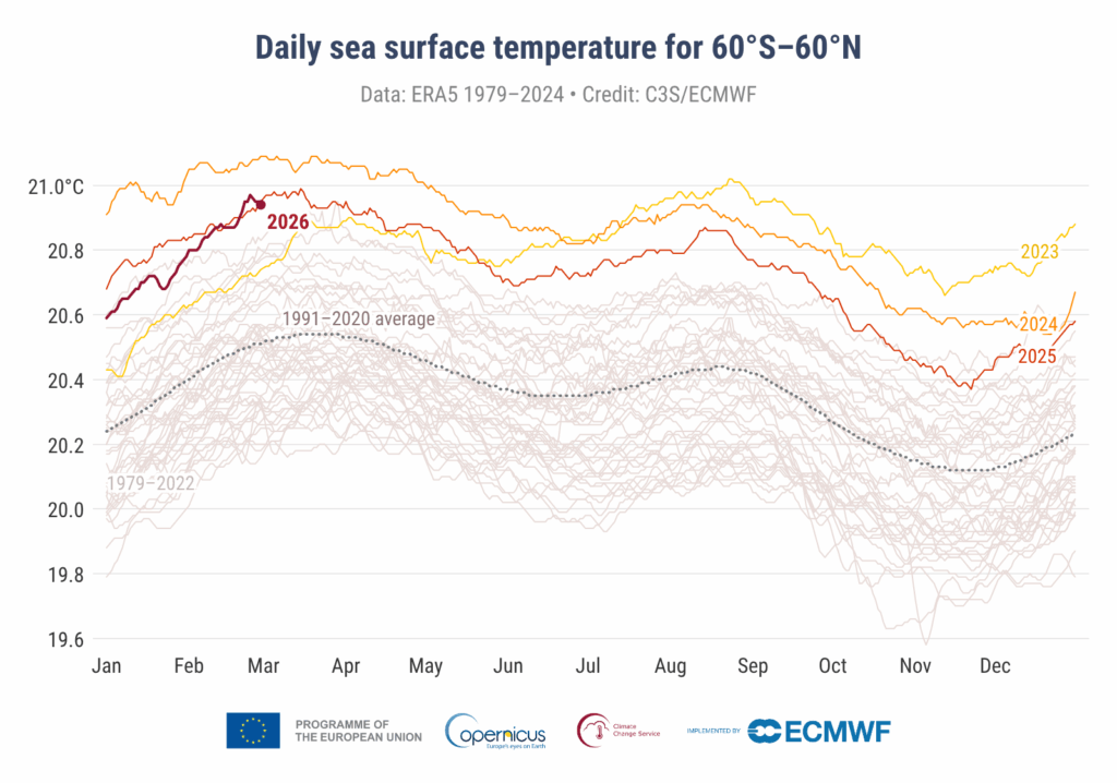 Este contexto oceánico ayuda a entender por qué 2026 destacó por registrar un febrero con temperaturas globales muy elevadas.