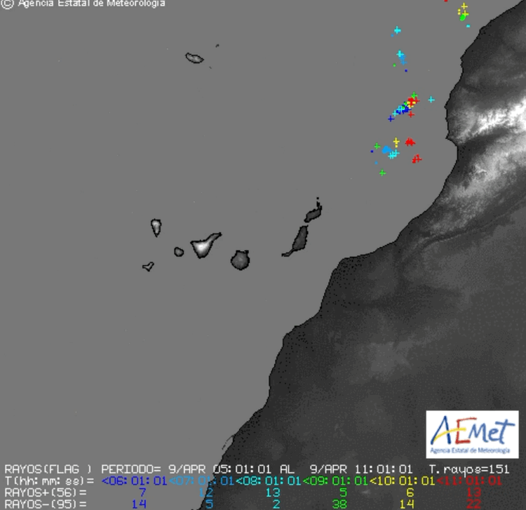 Detector Rayos durante la tarde y animación satélite desde las 12 horas. El acercamiento de la borrasca a islas orientales ha dejado incidencias en las comunicaciones aéreas