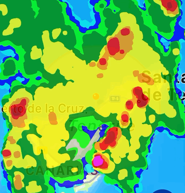 Importante nucleo entrando por Anaga, ya se deja oir su cercanía.