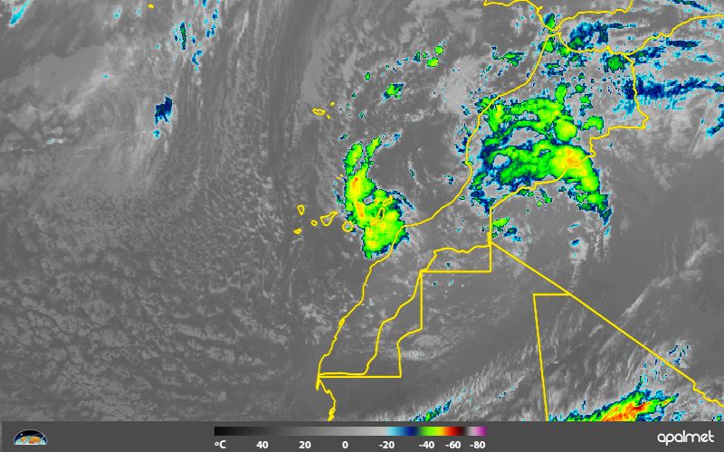 ya no va mas, ya esta reajustada lo que esperabamos del sur de La Peninsula-formando esa coma amarilla-es un frente convectivo-tormentoso que va a ser catapultado hacia las Islas Centrales- a la inversa-en sentido retrogrado de noreste a oeste-suroeste, alcanzando de lleno a Gran Canaria y Tenerife, sin descartar a Lanzarote-Fuerteventura-La Palma... pero el gordo creo que va para las citadas en primer lugar... .