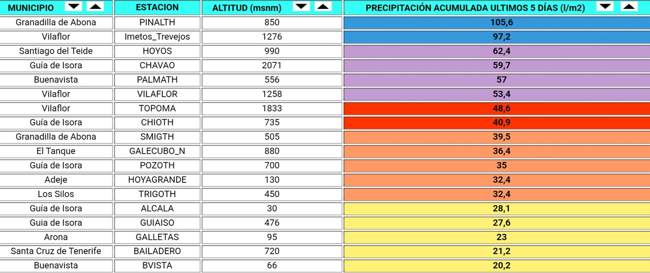 100 mm de agua, la mayor cantidad de lluvia desde Hermine. Cuando existe verdadero flujo húmedo del SW, esa zona se convierte en la mayor exprimidora de lluvia de la isla con diferencia. Mi familia me dijo que hoy no ha parado en Trevejos y La Escalona, prácticamente hasta hace una hora.