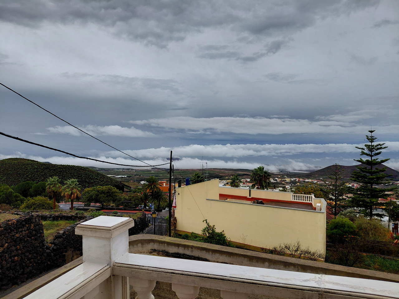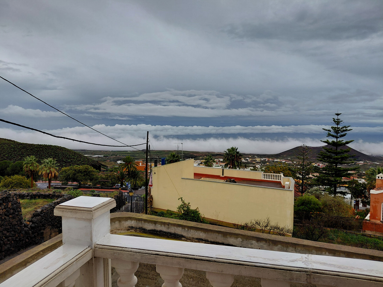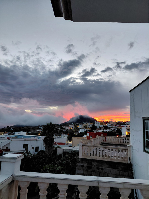 En San Miguel ha llovido bien, moderado varias horas y luego ratos fuertes. A mediodía, el frente se desintegró al pasar por Tenerife y se despejó rápidamente por aquí, tras eso se formaron nubes de calor latente de bases muy bajas de alrededor de 100 m sobre el nivel del mar en el Aeropuerto Sur y Las Chafiras, luego atardecer de fuego, empieza bien el año, acumulado por aquí de 20 mm.