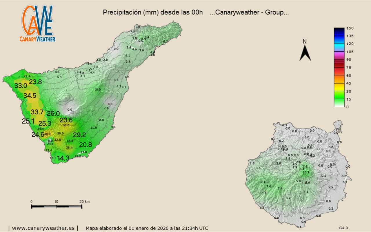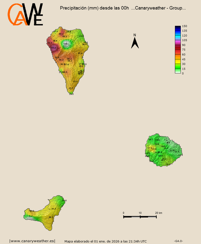 El Hierro, que no habían recibido con Emilia, hay vídeos de calles corriendo en Vallehermoso y cascadas en El Hierro. Y La Palma, pues La Palma, poco descubrimos de esa fantástica isla, menuda temporada están teniendo, de la mejor desde 2013 creo, cómo me alegro. El 15 de enero voy de viaje a esa isla a ver su verdor y paisajes.