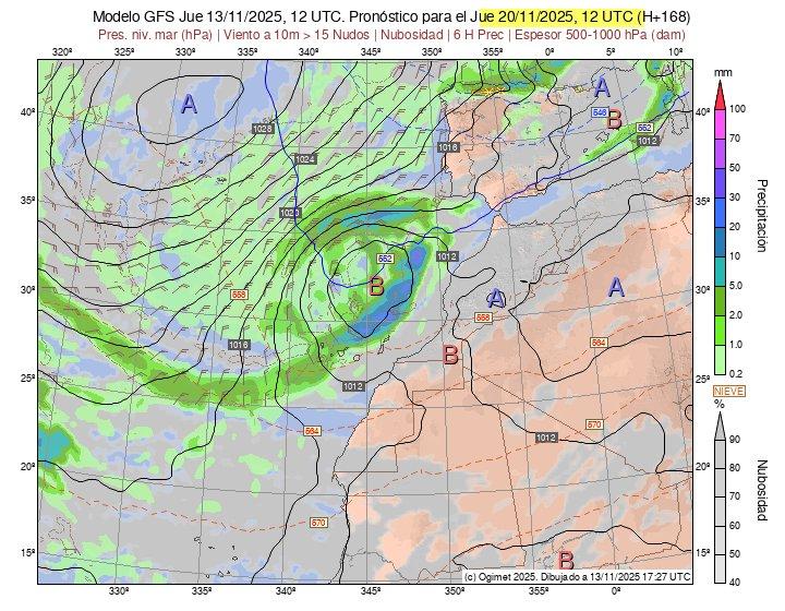 y en 120 horas GFS insiste insiste en el descolgamiento de una Borrasca Fria Aislada, que el modelo del Centro Europeo tampoco le pierde la cara... .