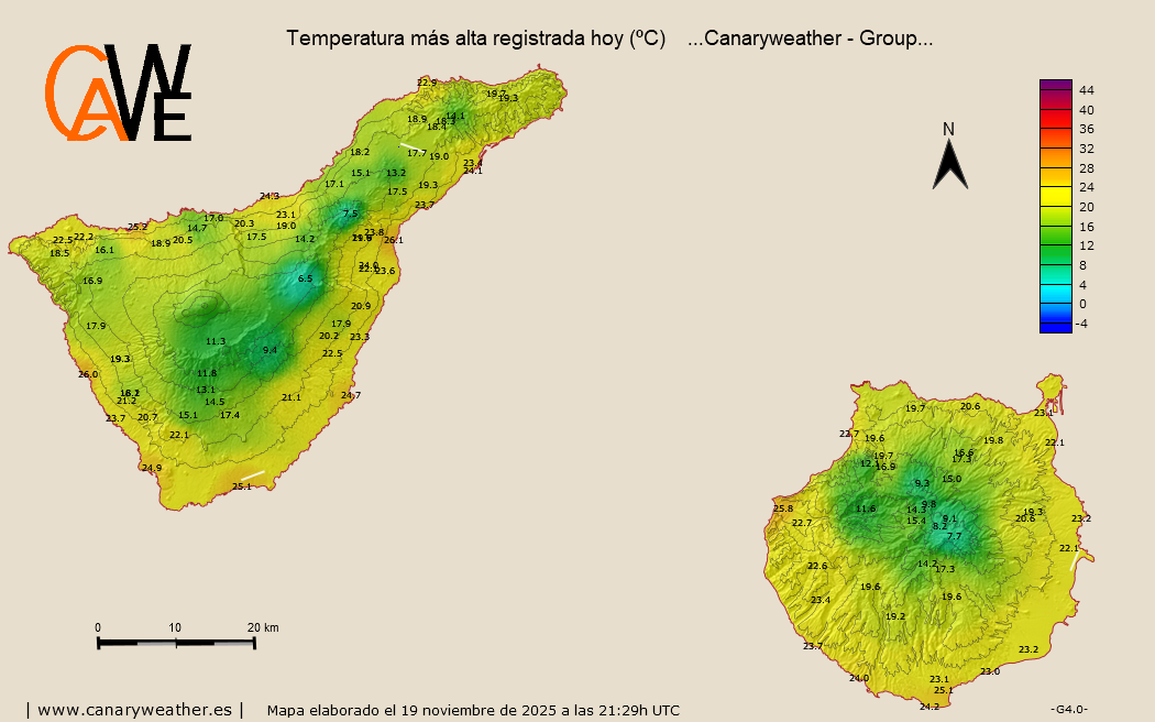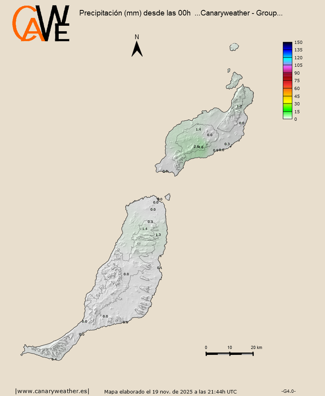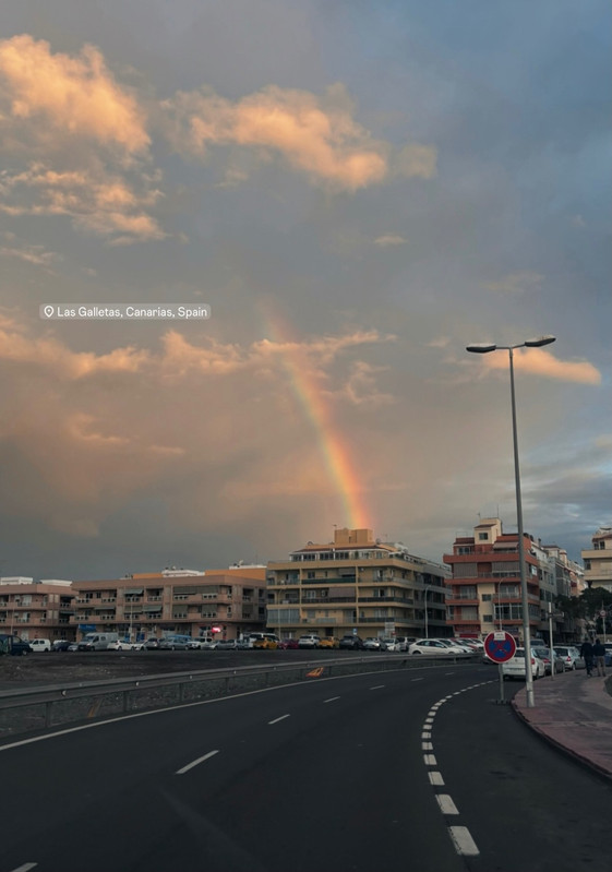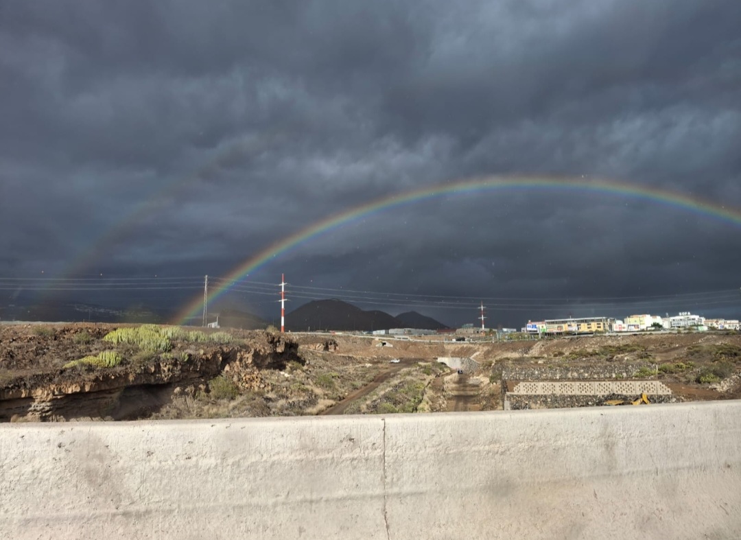 26°C mucho sol por la mañana y un bello arcoiris por la tarde. Las convergencias han crecido bastante hoy, se nota el aire frío en altura, y han originado pequeños chubascos débiles en el sur de Tenerife, principalmente en el municipio de Granadilla y en menor medida en Arico y San Miguel. 4 mm por San Isidro. Esperemos que mañana y el viernes se porten mejor.