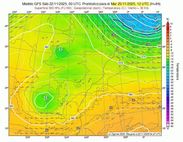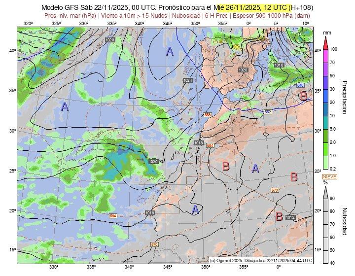 ... los modelos certifican que mañana giramos a componentes norte-mas bien noroeste poniendo punto y aparte a este episodio calido, refrescaran las temperaturas con algo de precipitacion por los nortes dentro de un periodo amplio de transicion/Alisios Inestables que nos debe llevar a la posible primera situacion mas o menos destacada, donde se puede abrir un pasillo entre el Azoriano y el consorcio anticiclonico nordeuropeo, por el que se deslizaria una potente Borrasca Fria-posible borrasca de impacto con nombre propio- que tiende a aislarse en España-Portugal, con opciones de que nos afecten de manera retrograda sus frentes asociados o que nos afecte mas de lleno en un hipotetico escenario con el centro de la Baja descendiendo al Golfo de Cadiz...