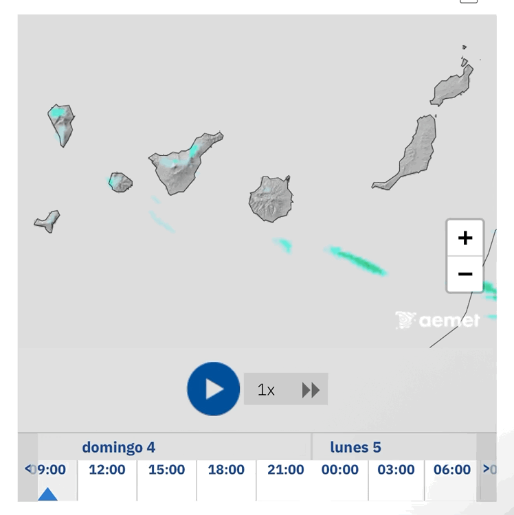 Zonas altas y cumbres de La Palma, Tenerife y Gran Canaria en el caso de la alerta; igualmente, el resto de la comunidad autónoma de Canarias, que estaba en situación de prealerta.