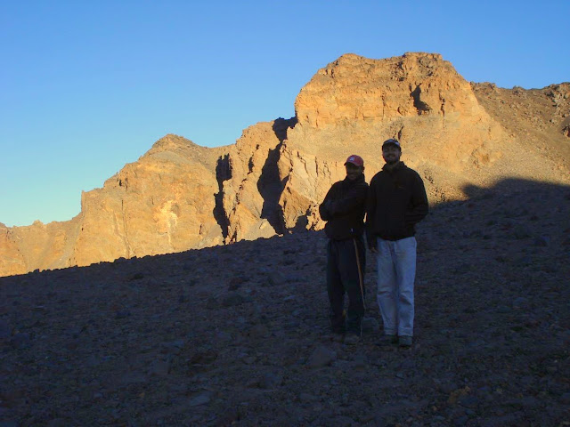 Sobre todo, al bajar al fondo del cráter, que hay más de 100 metros desde el borde hasta el llano donde vamos a dormir, y hay que descender a oscuras la pared. Una vez llegamos, a cenar...