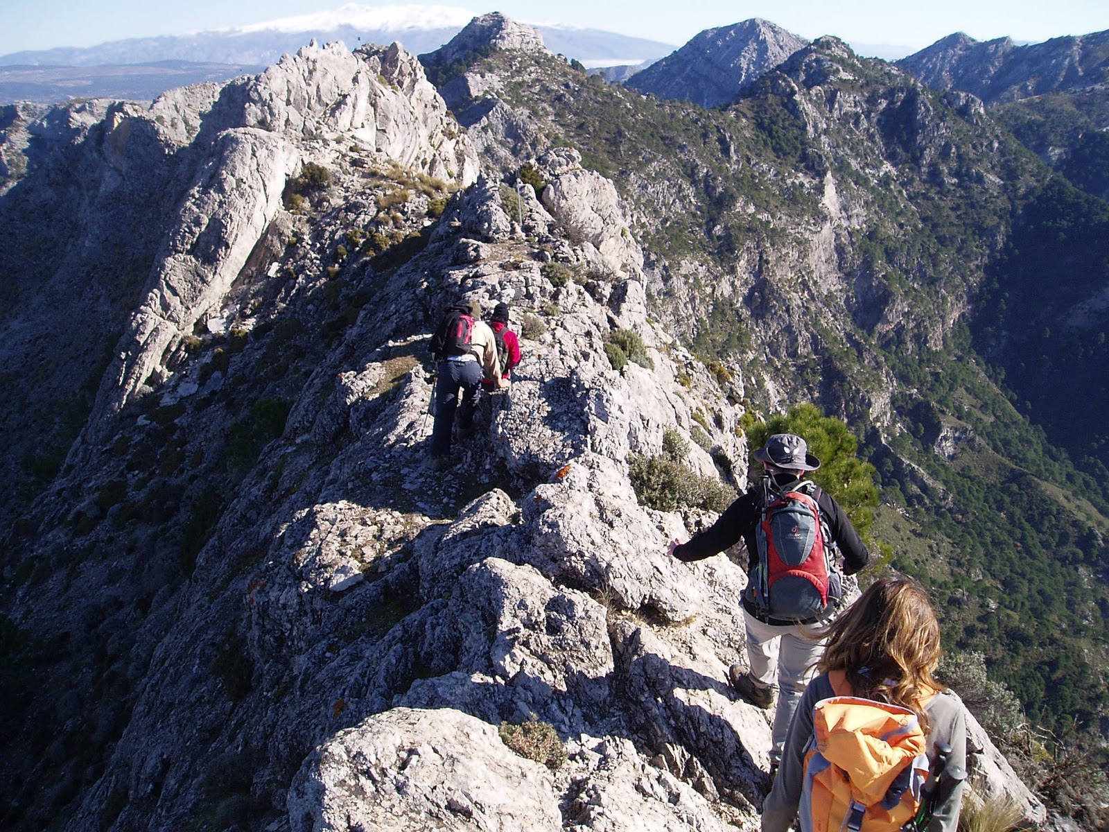 Sensacional ruta circular de 19 km comenzando en Puente Cambril (pasada La Resinera de Fornes) y subiendo al Puerto de Frigiliana, después a la Zona del Refugio El Cuervo para desde ahí acceder a La Cadena, y cruzarla en principio por la cresta, pero tras alcanzar el vertice geodésico y ante los riesgos que conllevaba el continuar por ahí, decidimos escorarnos a la cara norte y bajar unos cuantos metros. Superada La Cadena, volvemos a tomar altura para hacer cumbre en Piedra Sillada, un autentico balcón de la Sierra Almijara. Ya sólo quedaba enlazar con el Salto del Caballo y bajar por la Loma de Ubares hasta mismo punto de salida.