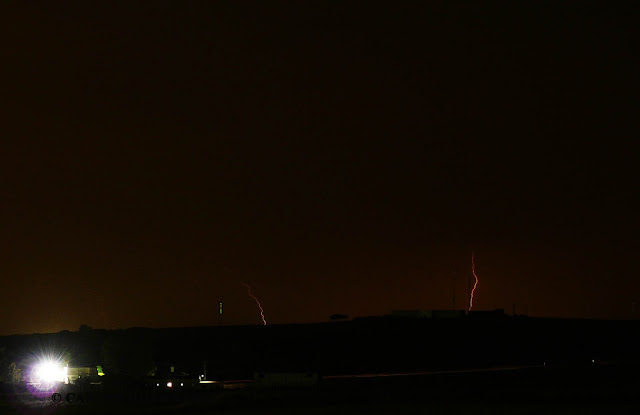 El pasado día 28 de Agosto, se formaron numerosos núcleos al Sur de Extremadura, pero fue ya por las 21:00 horas cuando una línea de cbs empezó a agruparse y a soltar destellos lejanos. 1 hora mas tarde una línea de tormentas abarcaba del N hasta el E. Finalmente, quedó solo una célula activa que se disipó sobre las 00:00 horas. Aquí os dejo algunas fotos de los rayos y un vídeo: