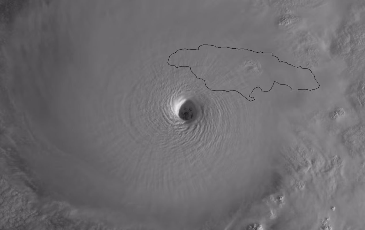 El ojo tan definido que tenía ha desaparecido pero al pasar al océano de nuevo el huracán intenta despejar el ojo de nuevo. Ya se reportan grandes daños en Jamaica cuando el huracán recién ha salido de ese país.