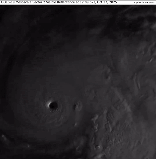Imágenes satelitales que muestran la fuerza destructiva del viento huracanado y de la pared del ojo de Melissa. Impresionante el ojo tan perfecto que ha generado, síntoma de su fortalecimiento.