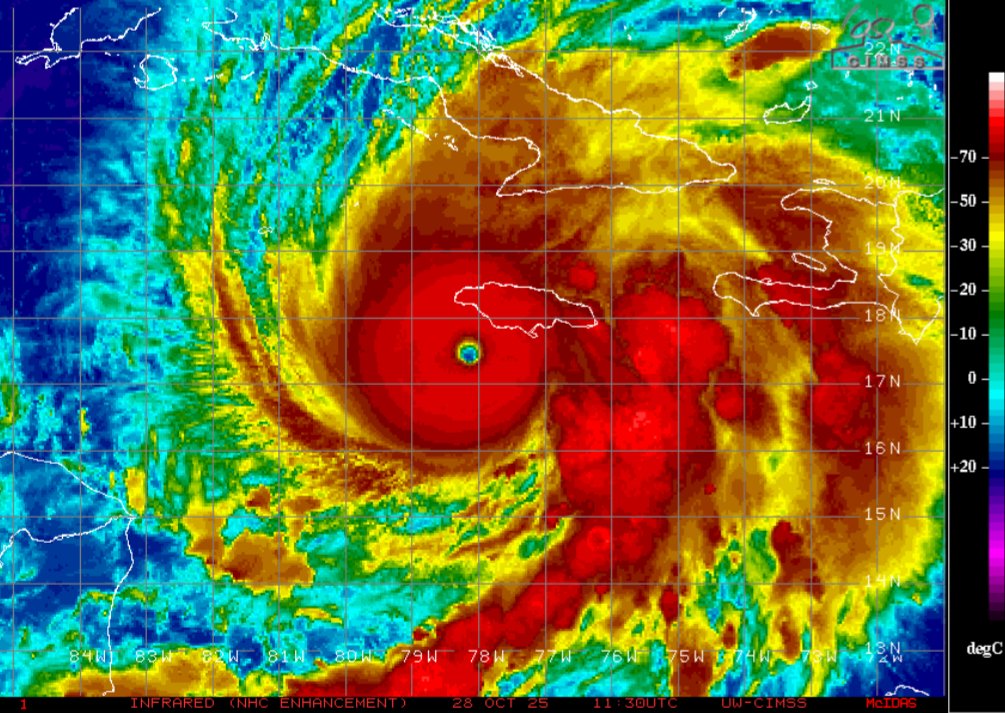 Pobre gente. El ojo del huracán Melissa apunto de tocar tierra en la isla de Jamaica. Estamos viviendo un acontecimiento histórico en la historia meteorológica.