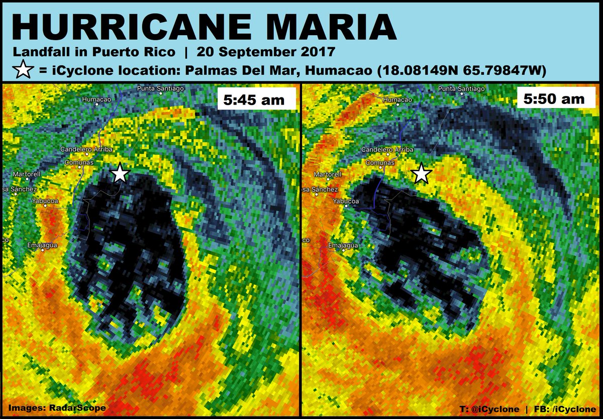 Inner eyewall of #HurricaneMaria as it went from circular and steady to elongated and gyrating wildly.