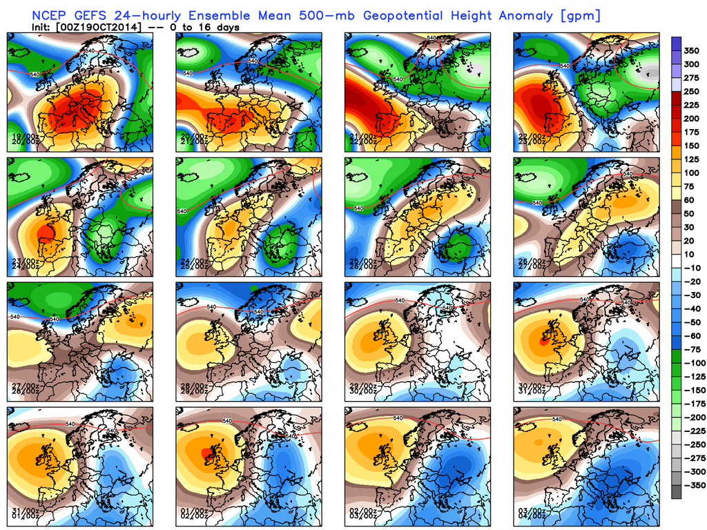A la pregunta de ¿hasta cuándo durará la estabilidad?: atendiendo a las actuales predicciones a medio-largo plazo, parece que esta situación de estabilidad en todo el suroeste de Europa podría abarcar gran parte de esta segunda quincena de octubre, con tendencia a que el paso de borrascas atlánticas vaya subiendo en latitud, y se instale un cinturón de altas presiones muy dinámico entre el Atlántico y Europa.