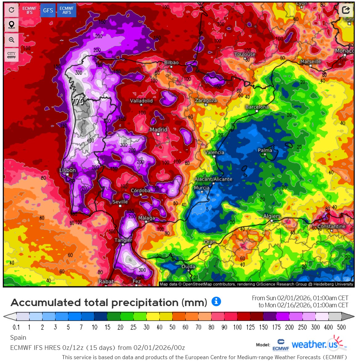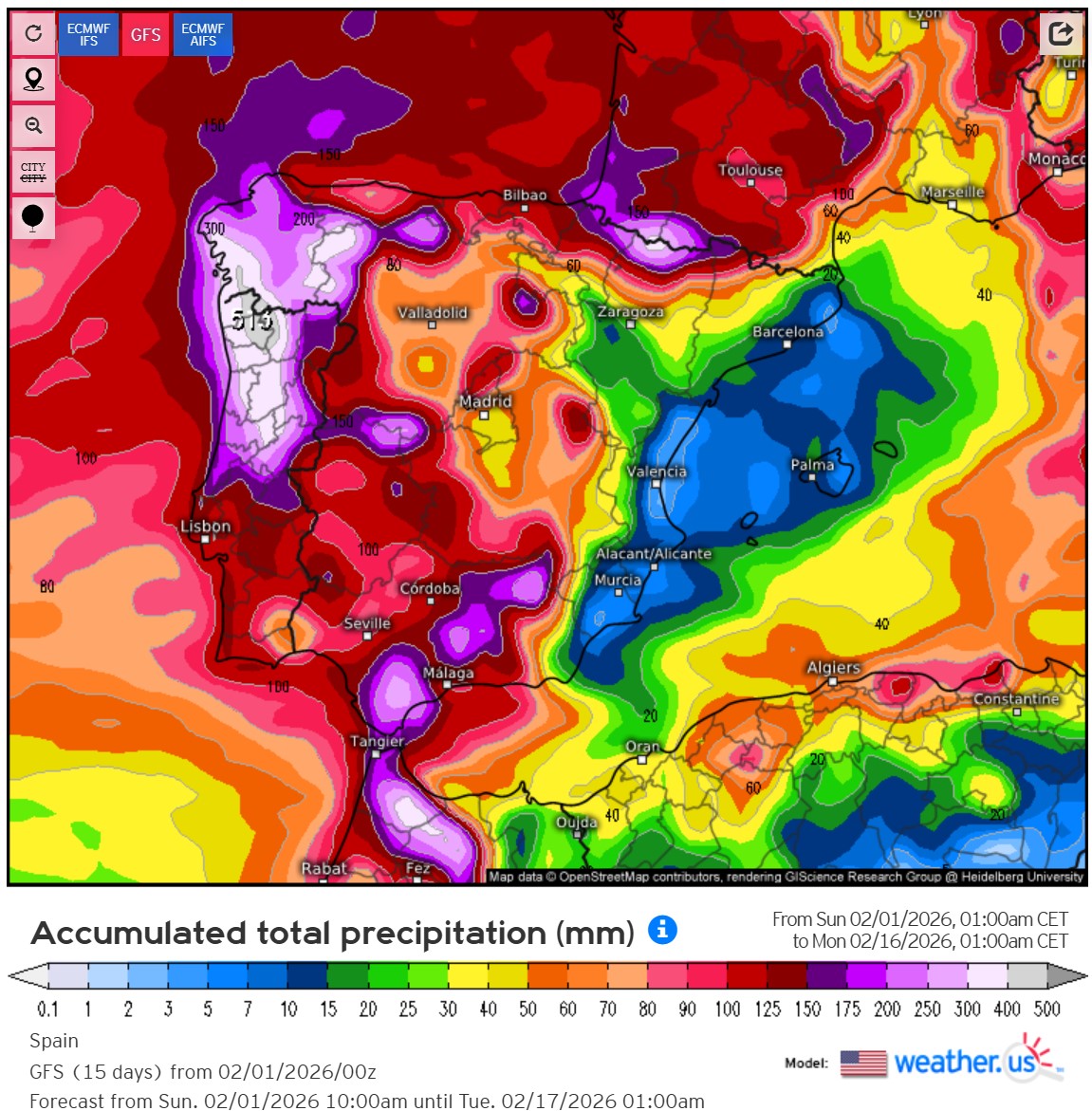 Como se dice por aqui, aviso mosca: lo de la lluvia los proximos dias 4 y 5 de febrero en Andalucia va a ser espectacular, y ojo a los problemas hidrologicos, que van a ser numerosos y graves...