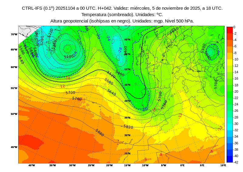 Y la NAO - oscilación del Atlántico Norte, que nos refleja la presión a nivel mas inferior .