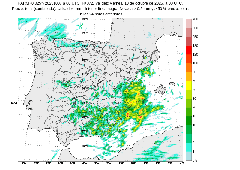 El miércoles solo hay aviso amarillo en zonas del este peninsular, pero el jueves meten aviso naranja en el Cabo de la Nao, litoral sur valenciano e Ibiza: 40 mm en 1 hora y 100 mm en 12 horas.