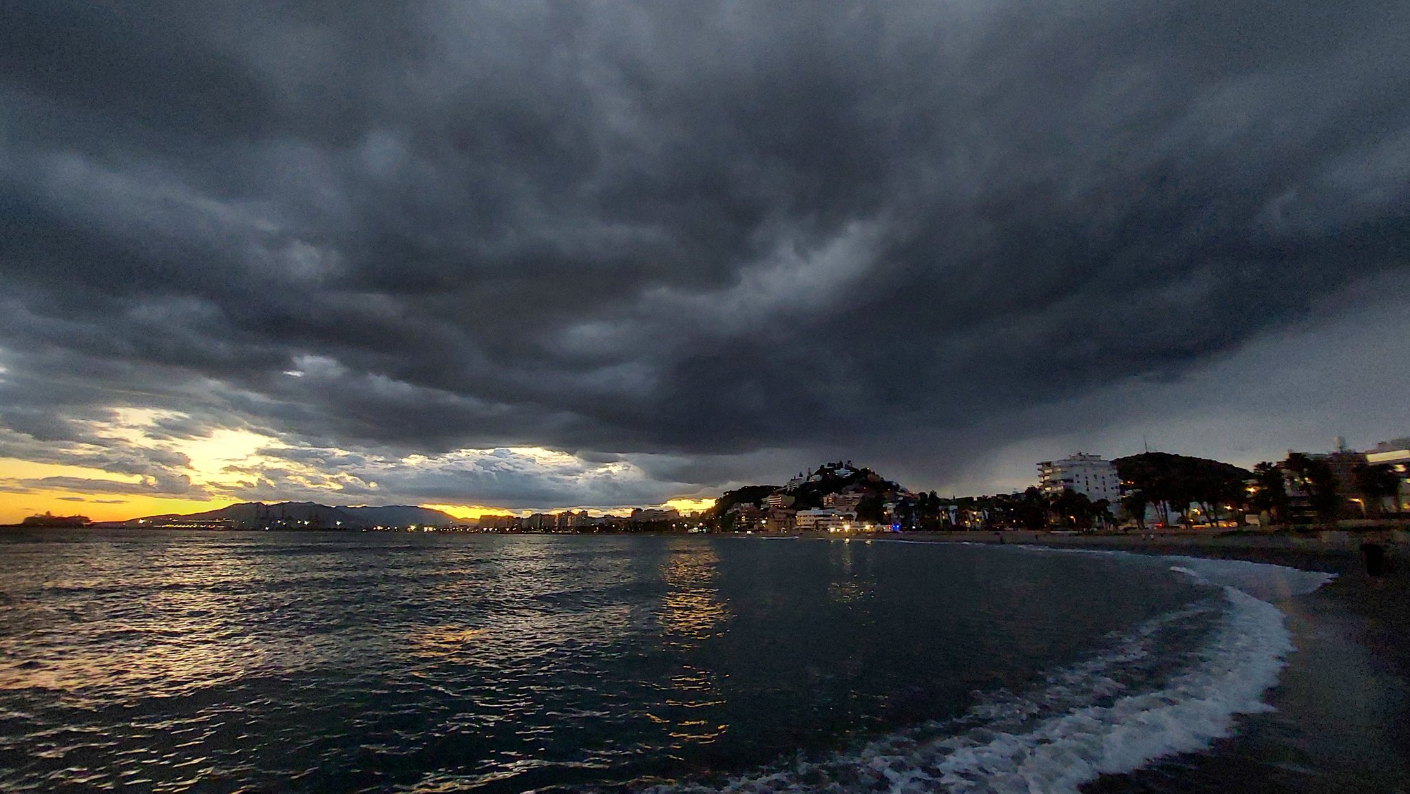 Ya tocaba ver un amanecer así. Está lloviendo débilmente por mi zona en Málaga, 0.6 mm, 19.8 ºC