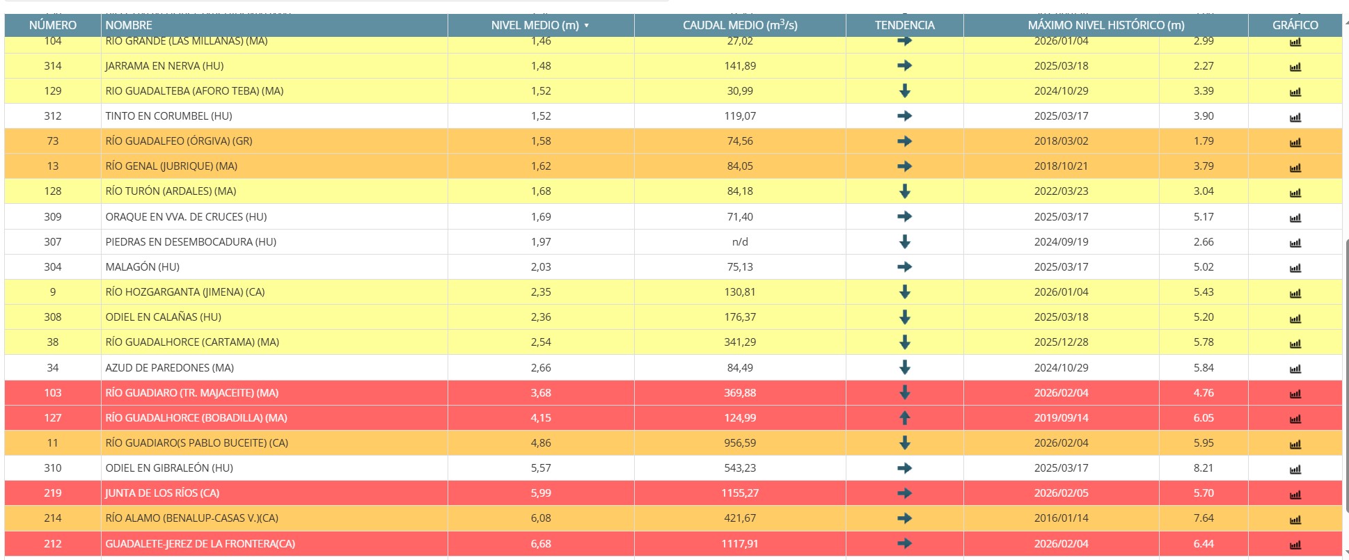5,99m en Junta de los Ríos. Ayer a esta hora estaba en 4,87m.
