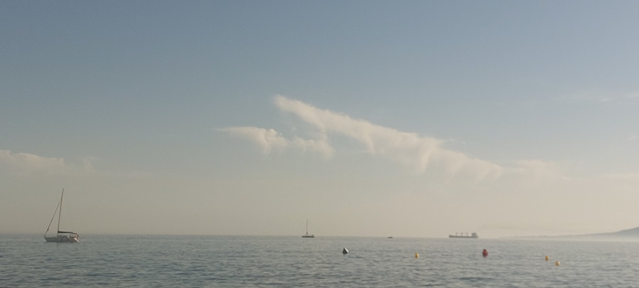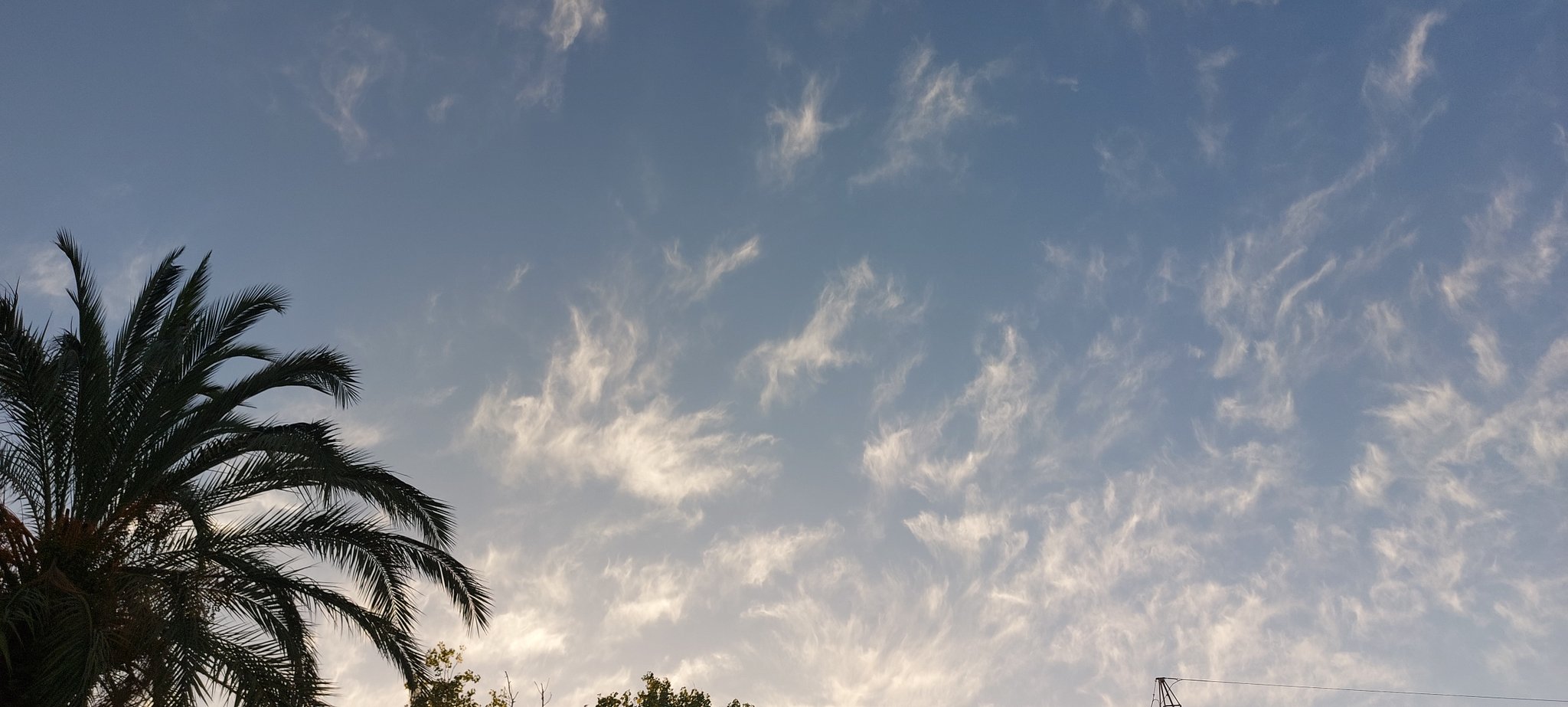 Estos días la brisa de levante mantiene el termómetro en valores benignos en la costa de Málaga. A ratos cambia a viento sur. En el cielo se ven algunos bancos de Cirros.