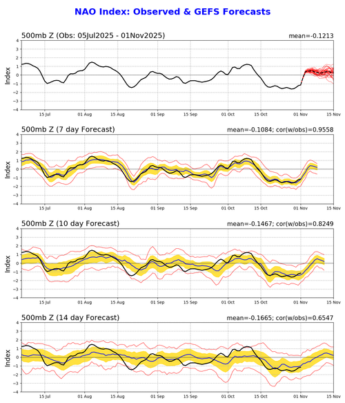 Y la NAO - oscilación del Atlántico Norte, que nos refleja la presión a nivel mas inferior .