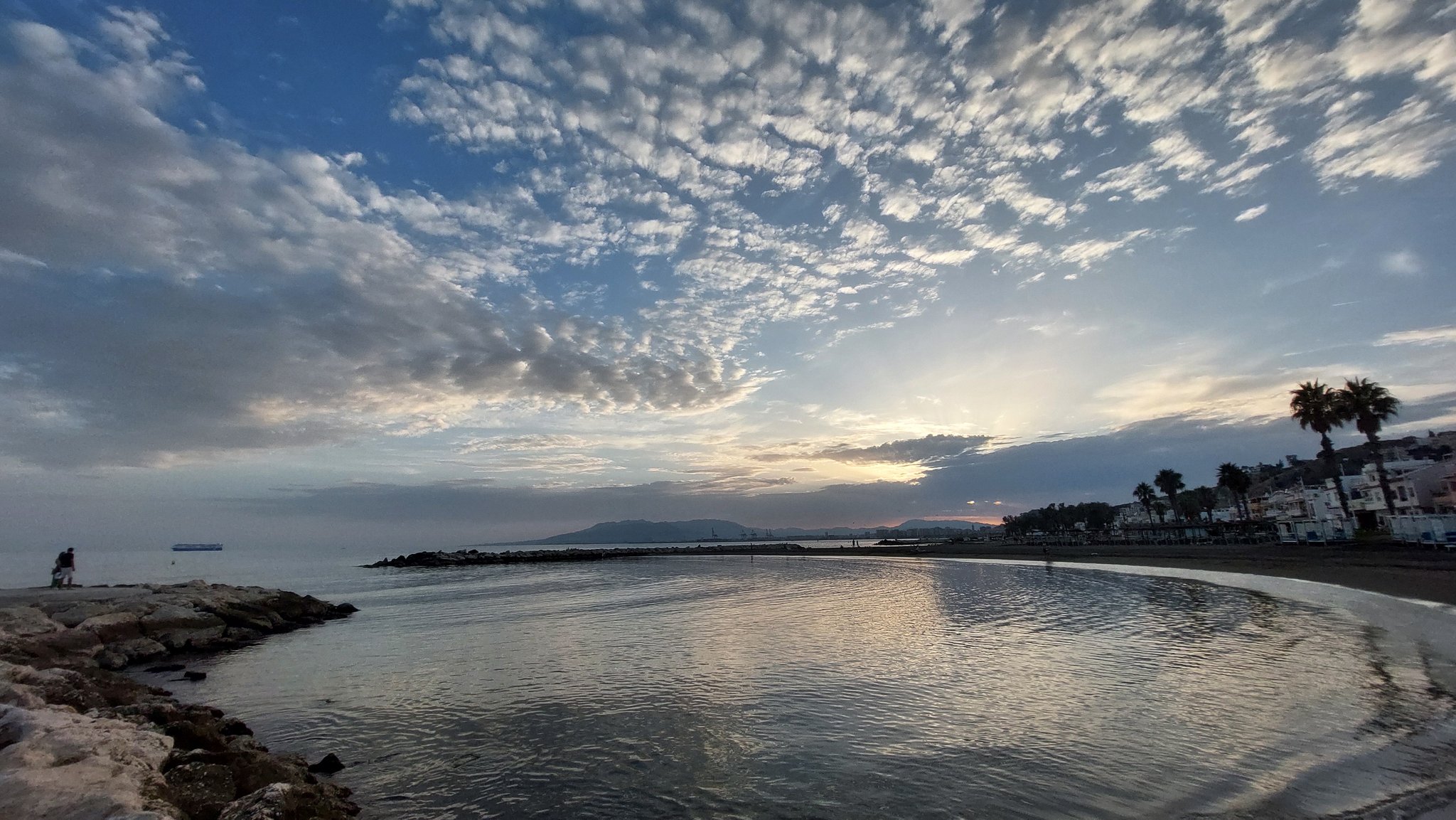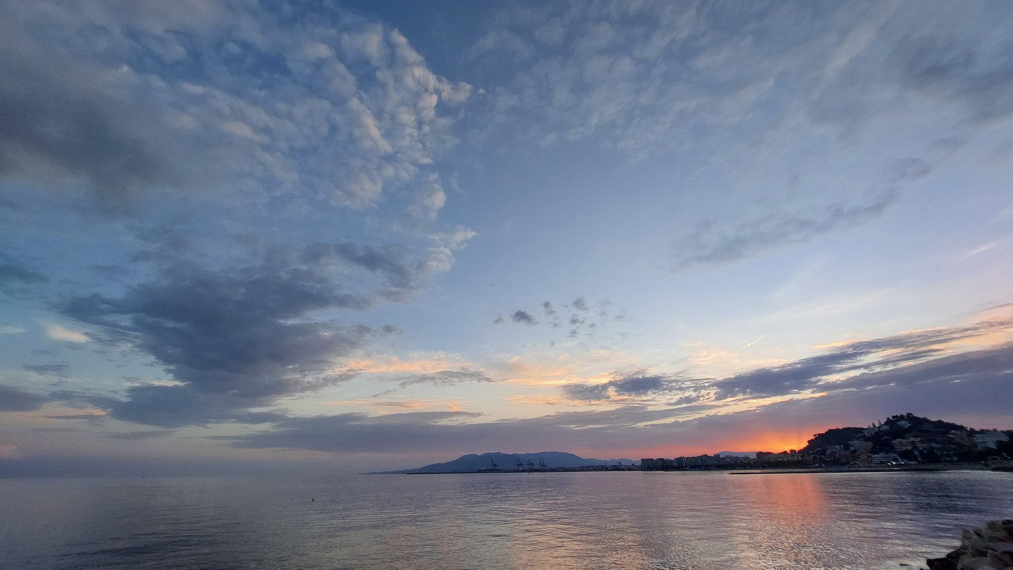 Las nubes han ido a más durante el día de hoy en Málaga. Nubosidad variable, rota, que denota estabilidad. Al ocaso se observaban tormentas en África.