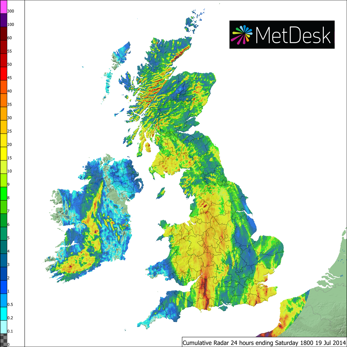 Our cumulative radar for the 24 hours to 18:00 today highlights some really rather torrential downpours...