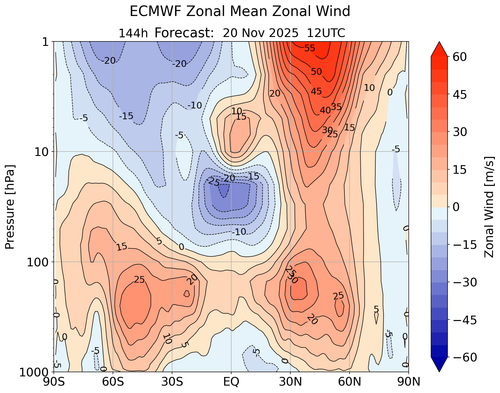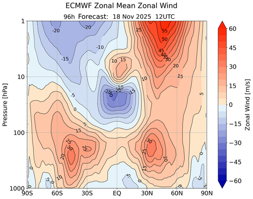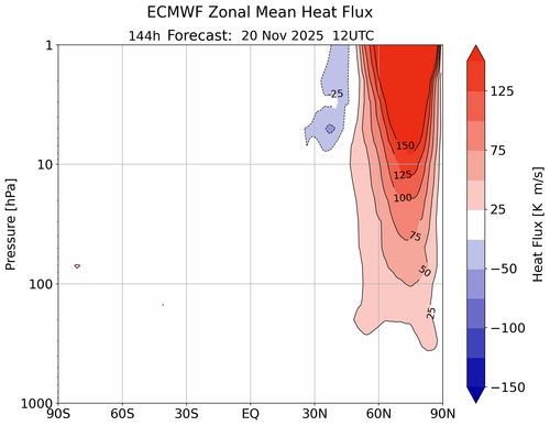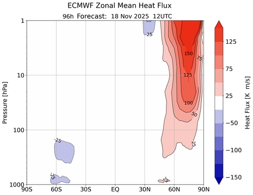 El día 18-11-25 a 10hPa ese frio de la zona central del vórtice polar asciende hasta los 3-5 hPa
