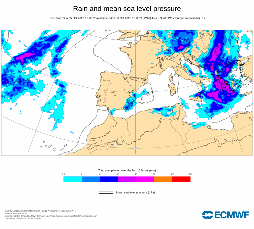 Además, desde Centroeuropa, podría llegar algo de aire frío en altura, en un flujo nordeste–sudoeste, que, al recibir el aporte húmedo y más templado de vientos desde el Mediterráneo, serviría para provocar nubosidad y precipitaciones en esa área.