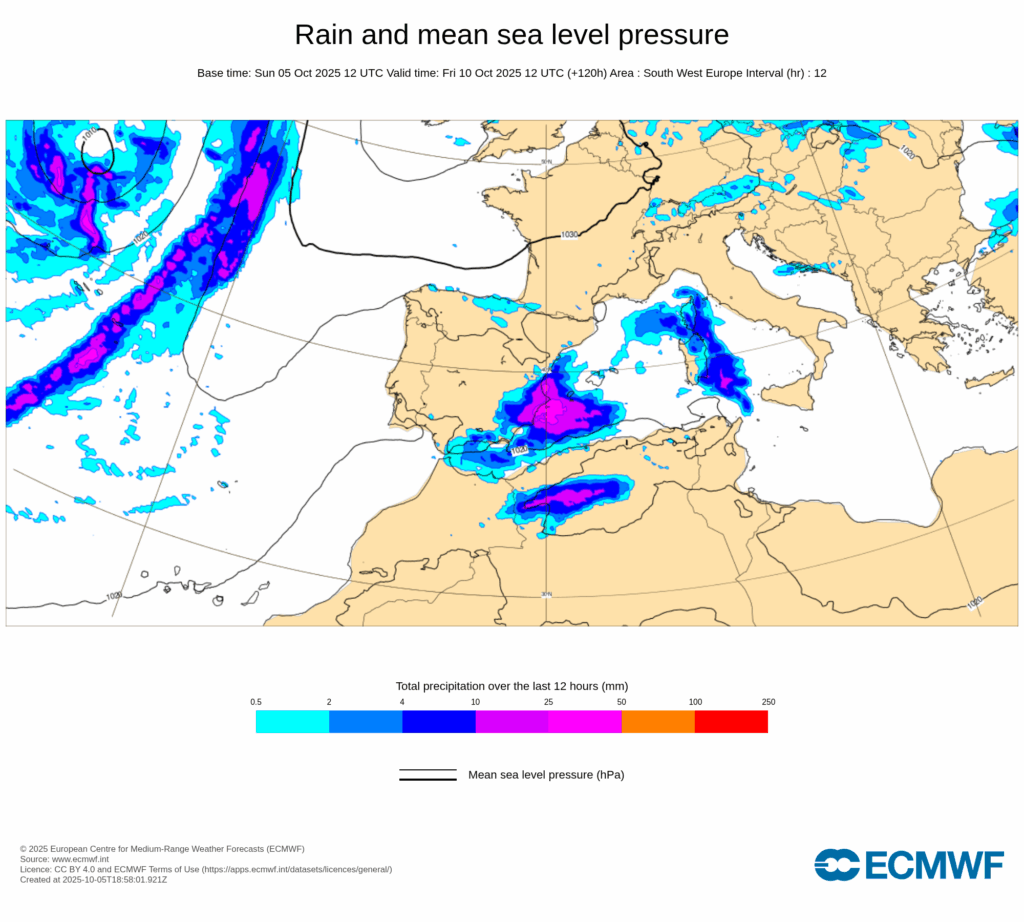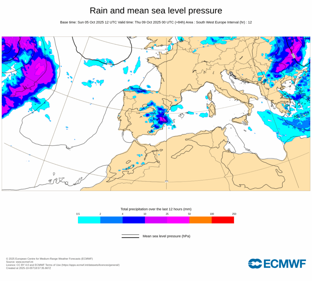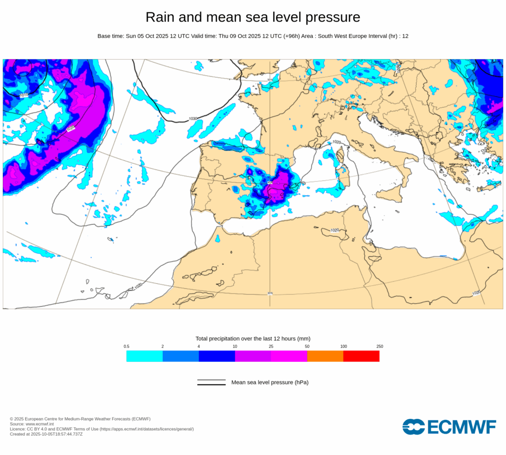 Ya, muy avanzado el pronóstico, y con una notable incertidumbre, hablaríamos para el Puente del Pilar de lluvias más abundantes y repartidas por el mediterráneo peninsular Baleares y zonas aledañas.