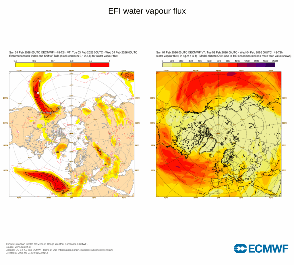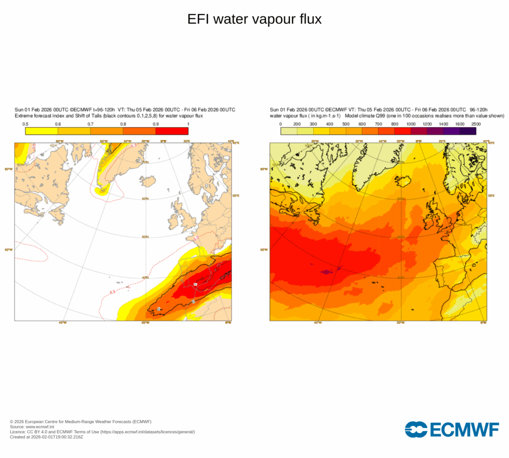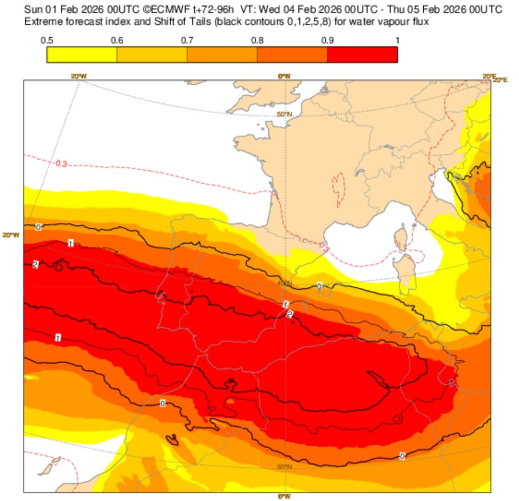 Y es que la configuración atmosférica de momento no cambia: bloqueo anticiclónico entre Escandinavia y Rusia, hundimiento del anticiclón de las Azores muy al sur y la llegada de un flujo de aire procedente de latitudes subtropicales con mucha cantidad de agua precipitable.