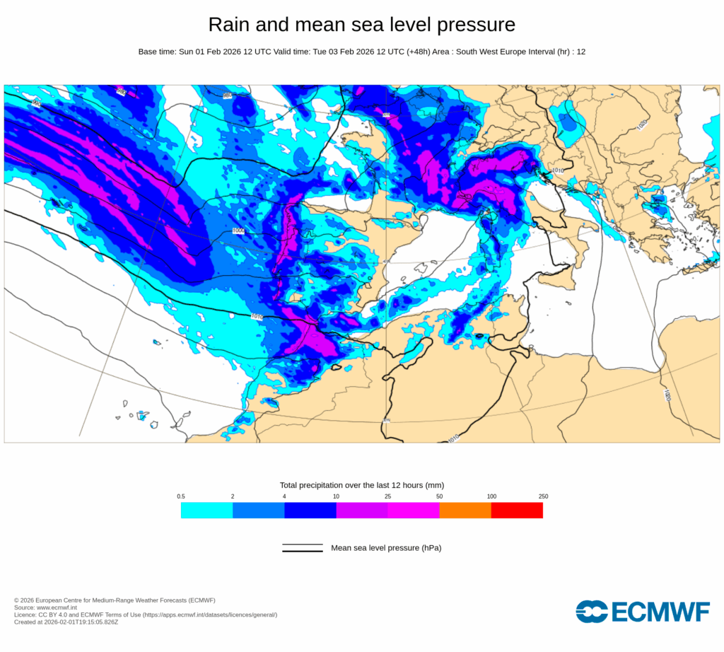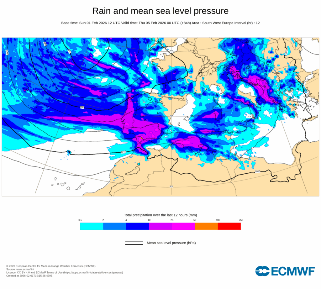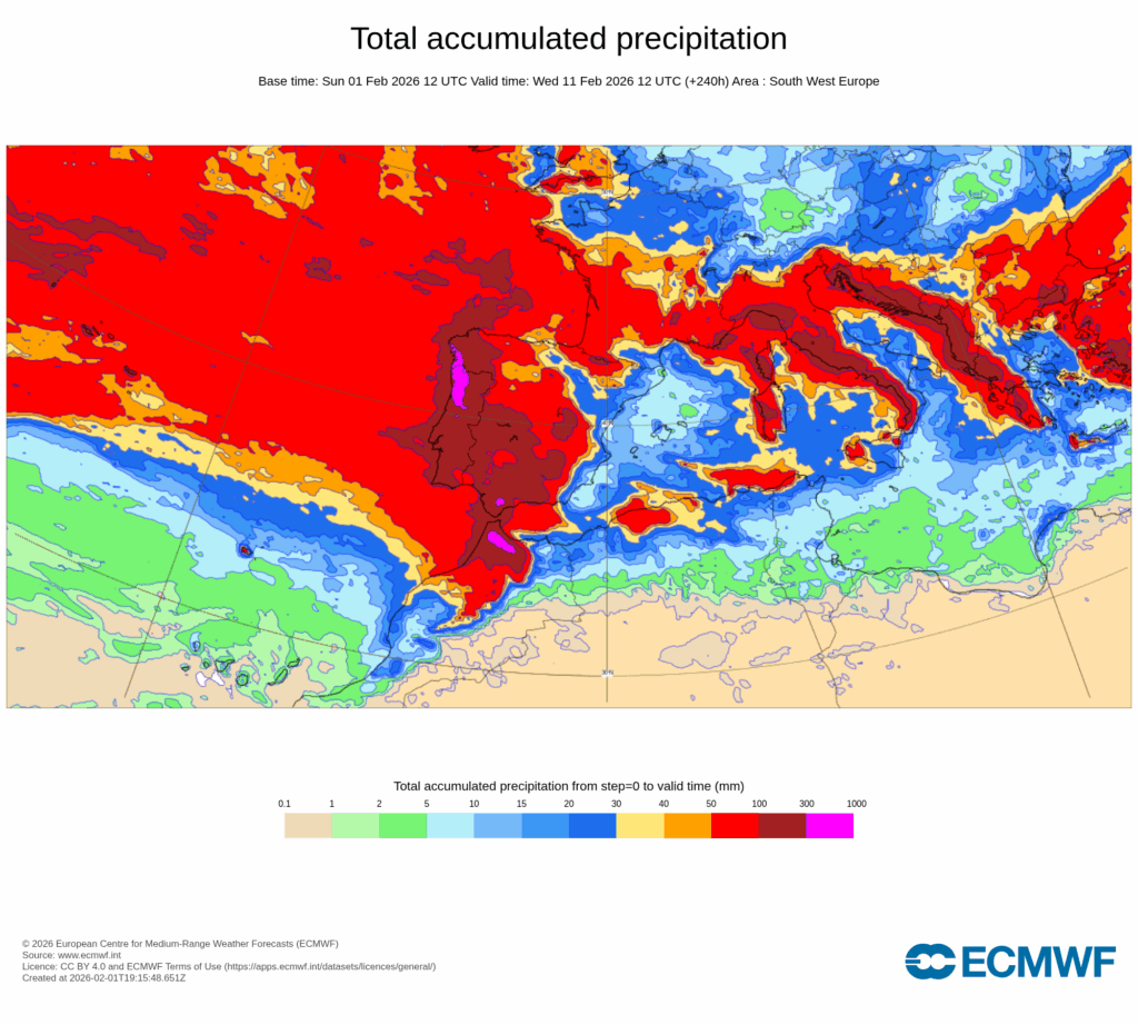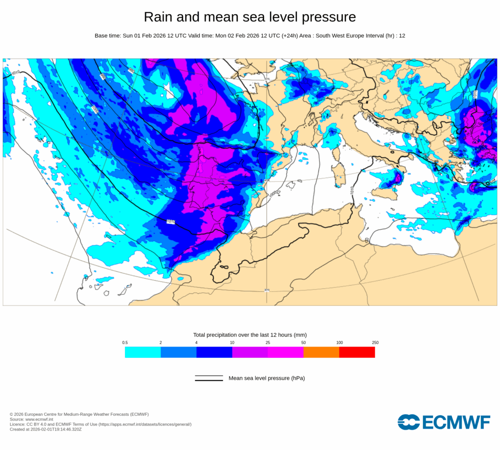 La primera semana de febrero nos traerá a muchas regiones de España lluvias muy copiosas sobre suelos muy saturados de agua, por lo que el riesgo de que se produzcan inundaciones y desbordamientos de ríos es importante.