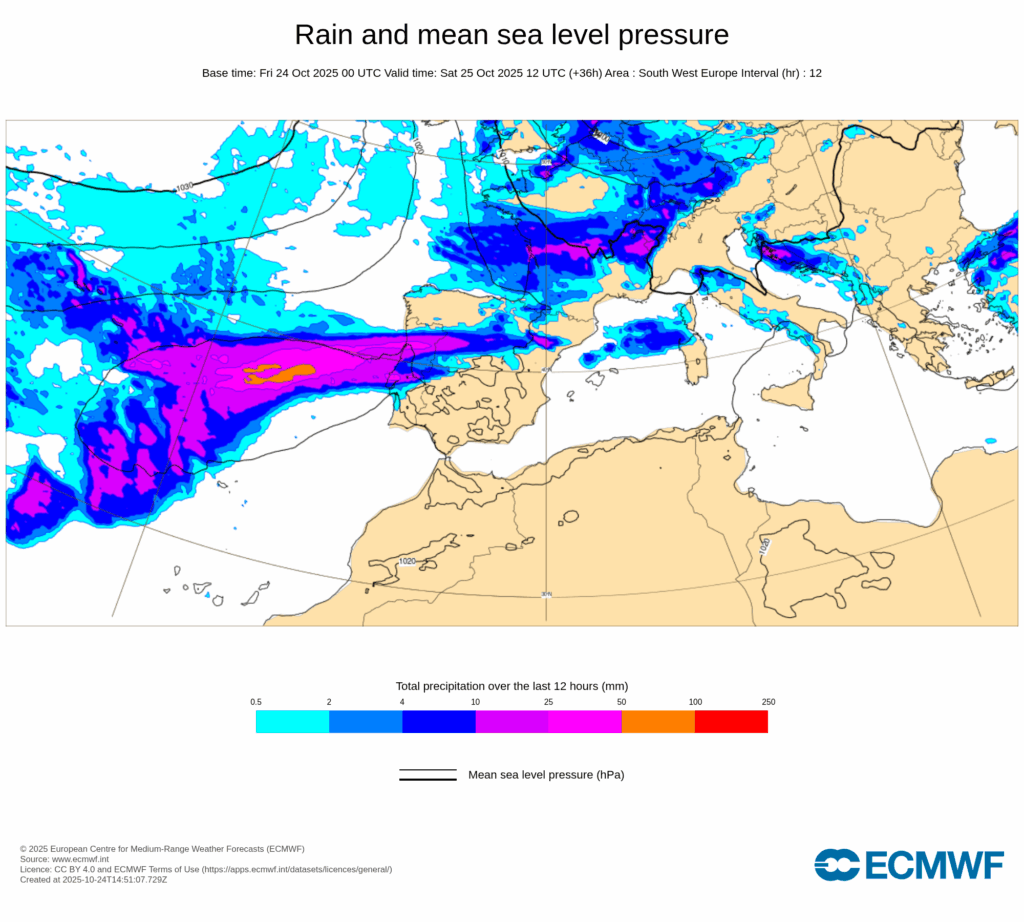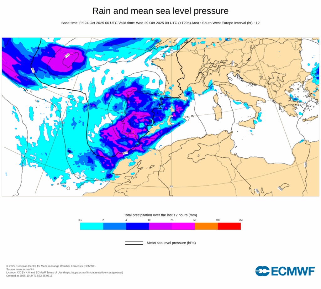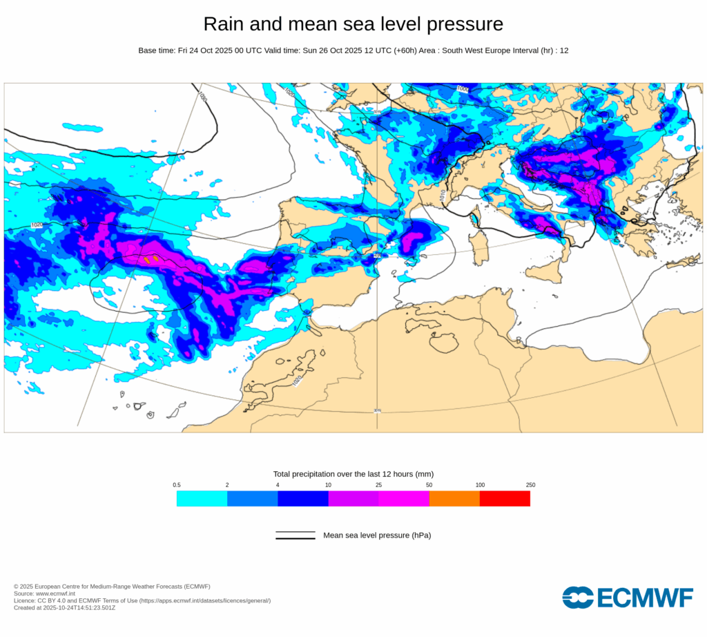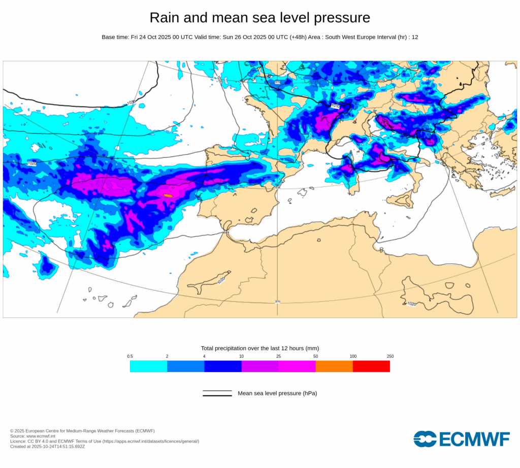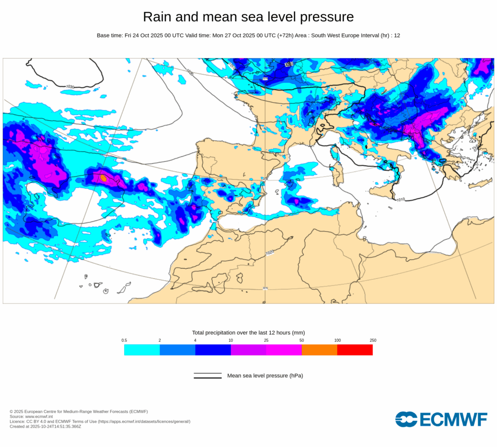Las lluvias se extenderán más al sur y este de la Península Ibérica durante el fin de semana, aunque de momento no se prevé que sean especialmente abundantes.