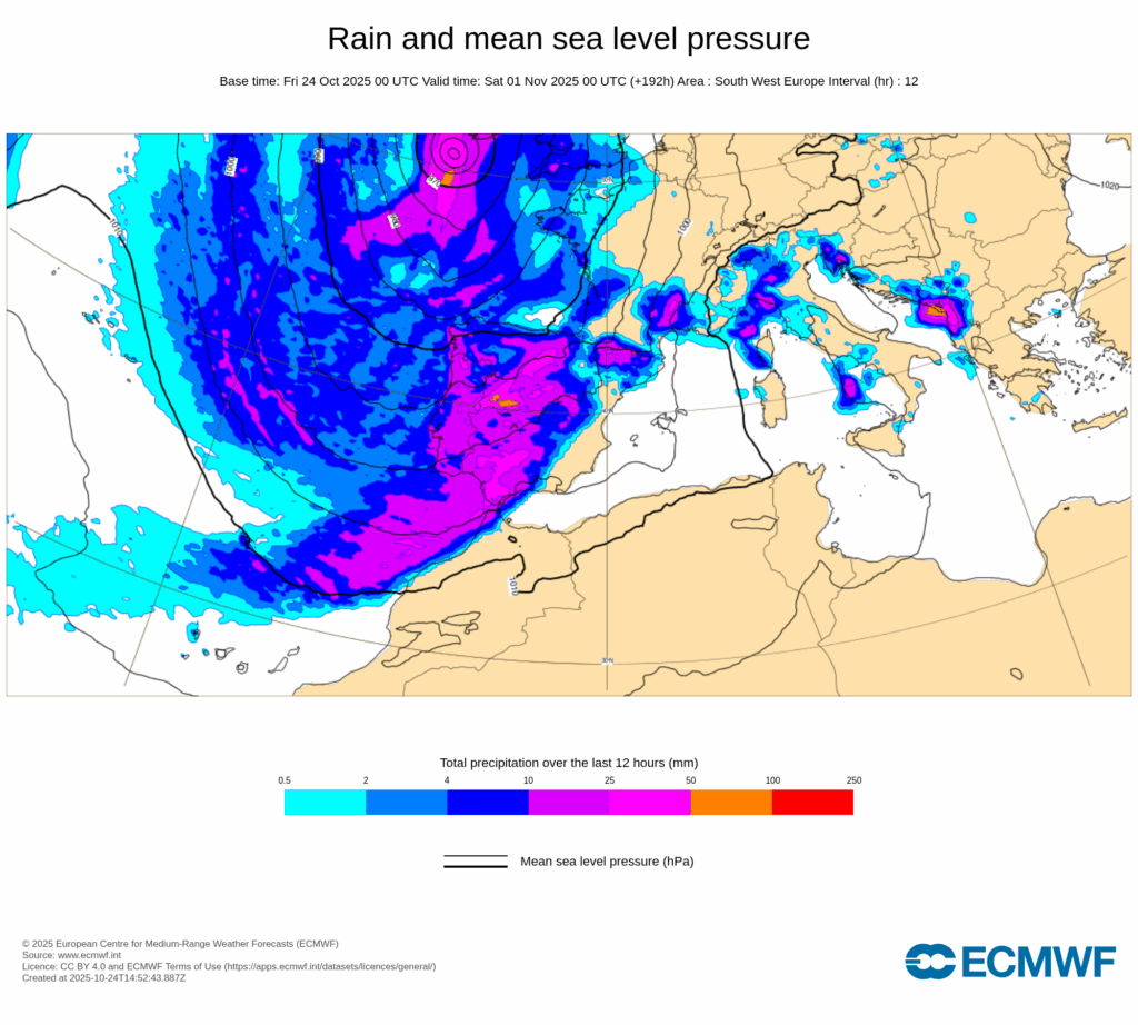 Tras una mejoría relativa y transitoria, las lluvias podrían de nuevo generalizarse y ser importantes en prácticamente toda la Península, Baleares y áreas de las Canarias, aunque dado que esta nueva borrasca se aproximaría a nosotros en unos 7/9 días, debemos de aguardar más tiempo para dar el pronóstico por bueno.