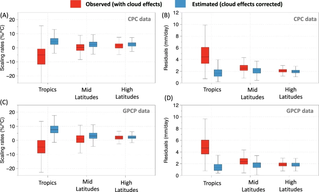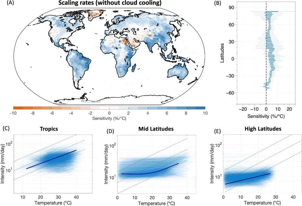 Cuando se corrige ese enfriamiento inducido por la nubosidad, la relación entre temperatura y precipitación extrema cambia por completo.