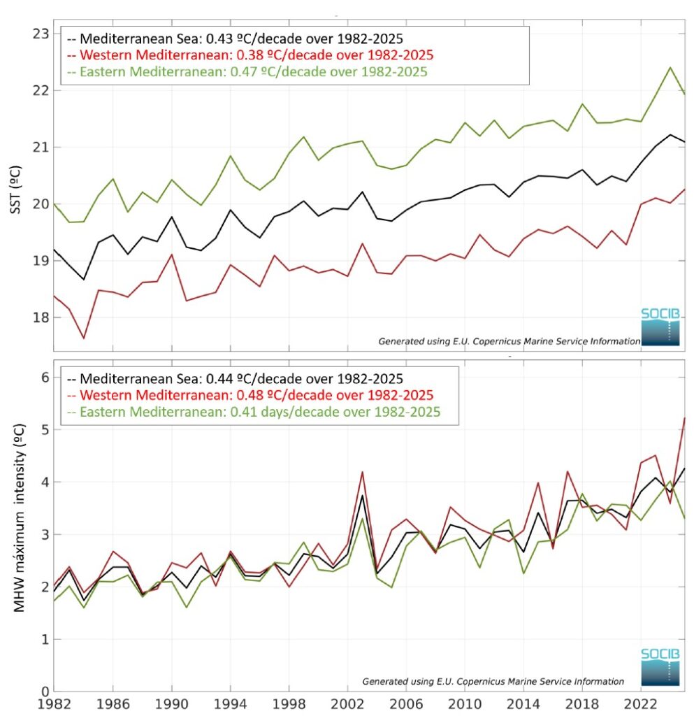 Este aumento no ha sido puntual, sino persistente, reflejando una tendencia clara de acumulación de calor mediterráneo que se intensifica año tras año.