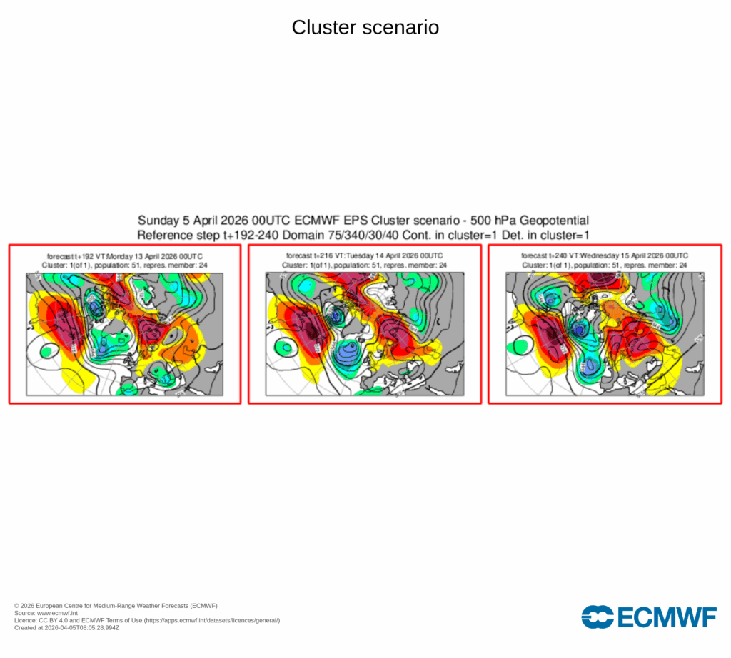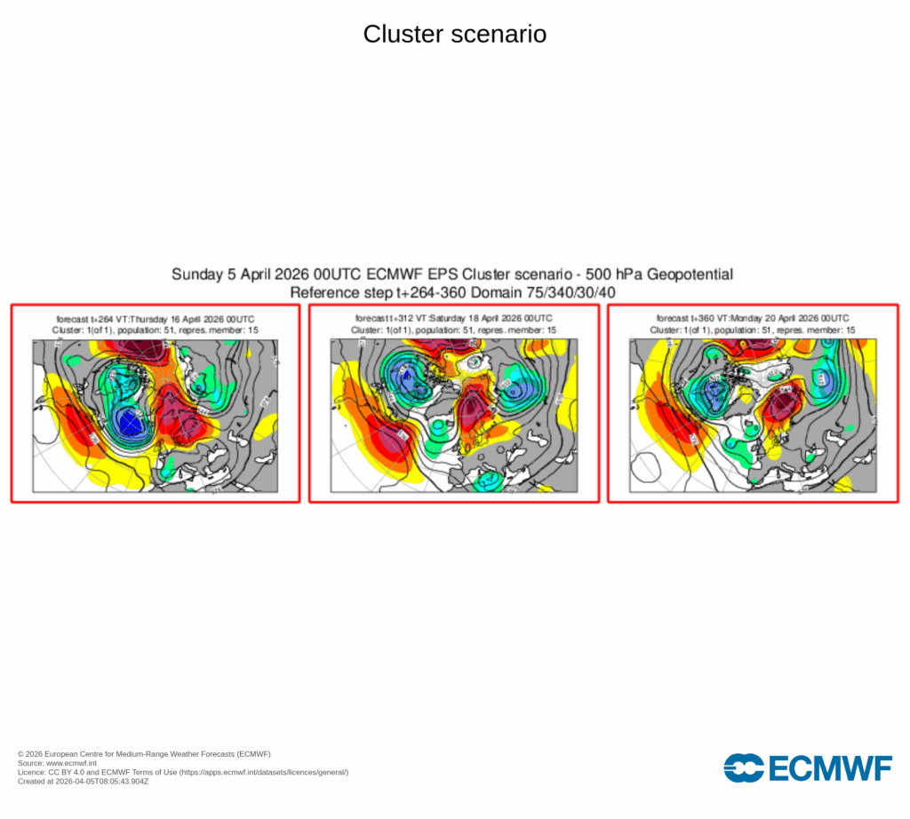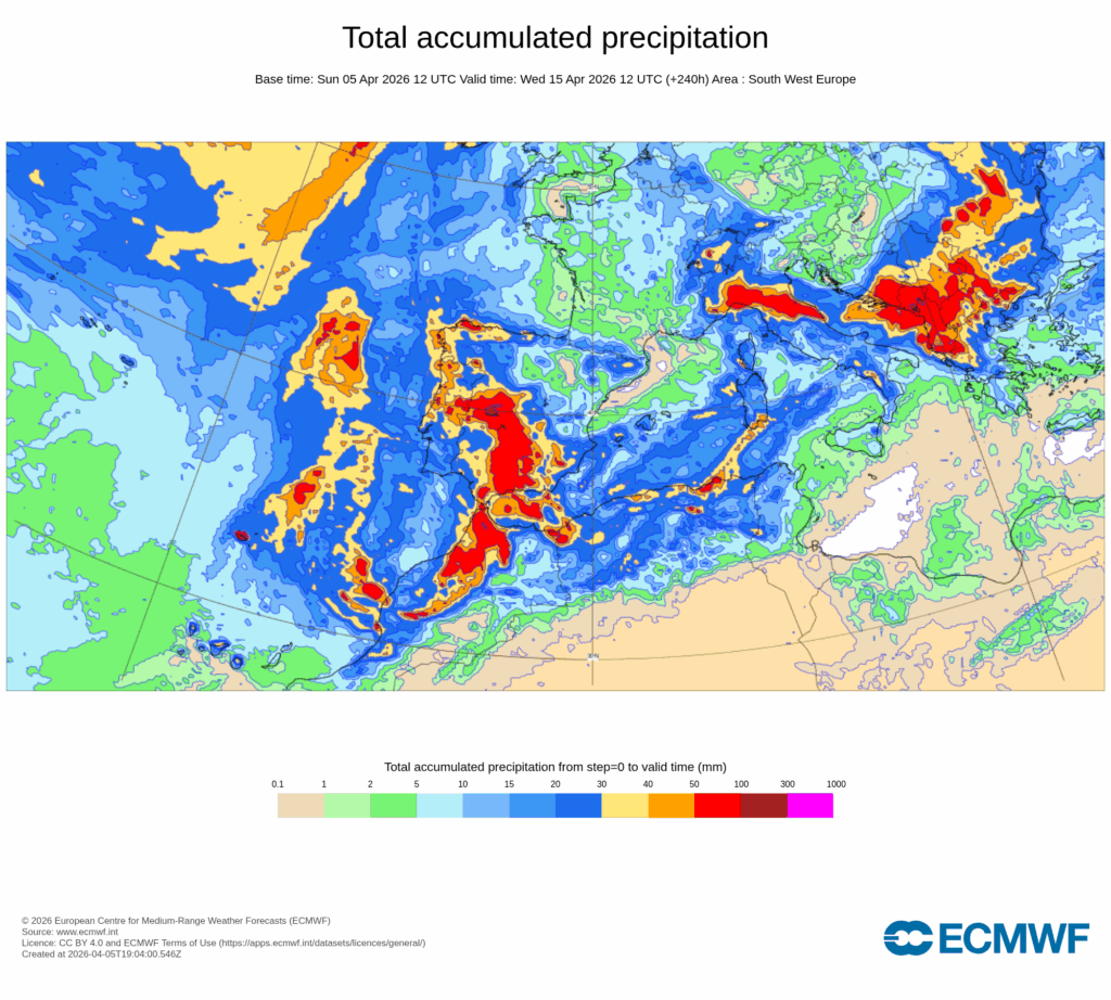 Incluso a largo plazo, parece que un bloqueo anticiclónico septentrional puede alargar la situación de precipitaciones por lo que arrancaríamos abril cumpliendo aquello de aguas mil.