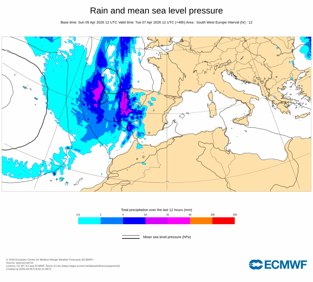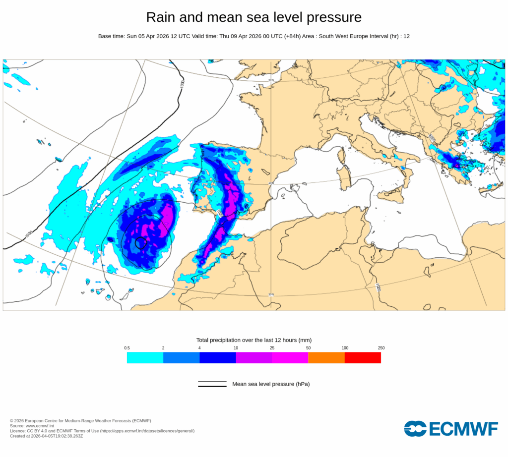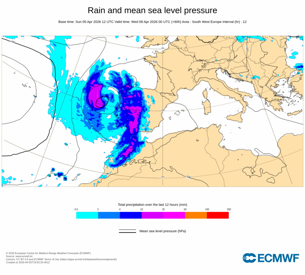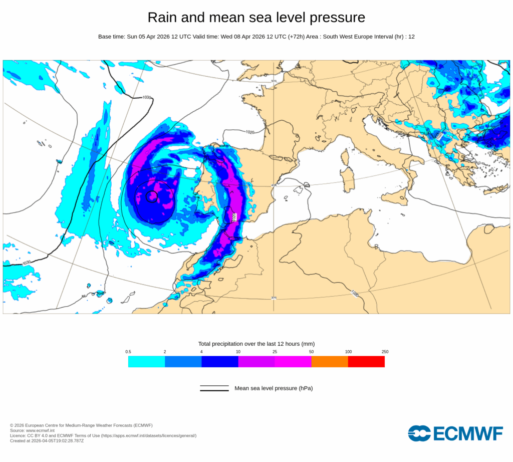 La llegada de una profunda vaguada desde el Atlántico que se estrangulará entre las altas presiones mediterráneas y el centro anticiclónico que se ubica al oeste de las Azores, provocará la formación de una DANA al suroeste de la Península Ibérica, cuyo radio de acción debe alcanzar en un momento u otro de la semana a muchas comarcas españolas.