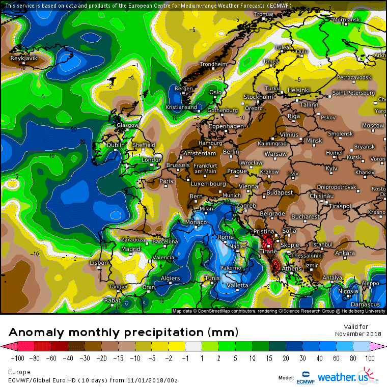 Las previsiones estacionales del Centro Europeo para los próximos meses se han vuelto a actualizar y los mapas siguen hablando de un otoño–invierno más bien húmedo y templado, continuando la tendencia que venía sugiriéndose desde elverano.