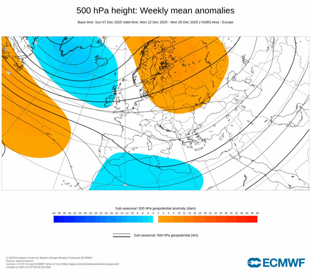 A largo plazo, los pronósticos siguen dibujando anomalías de presión negativas sobre nuestra zona, a todos los niveles de la atmósfera para finales de diciembre e inicios de enero, lo cual podría ser un indicativo de que la inestabilidad puede ser la nota predominante de las próximas Navidades.